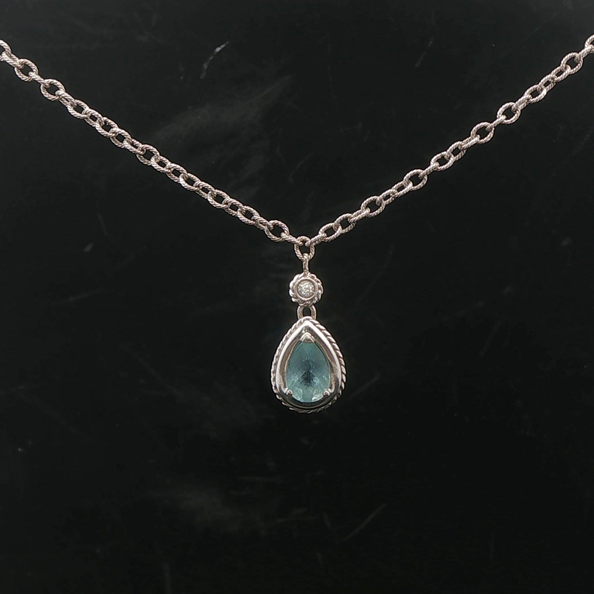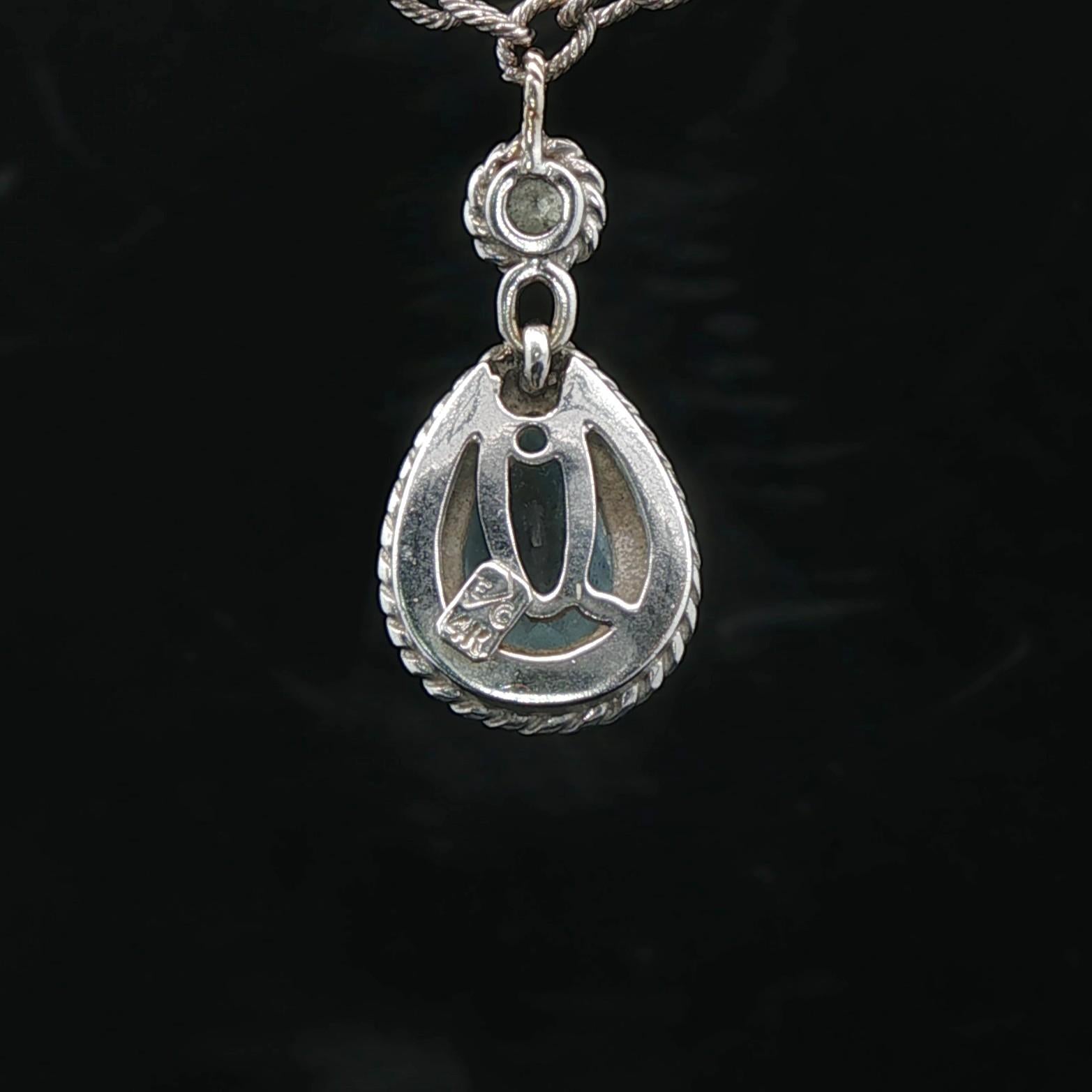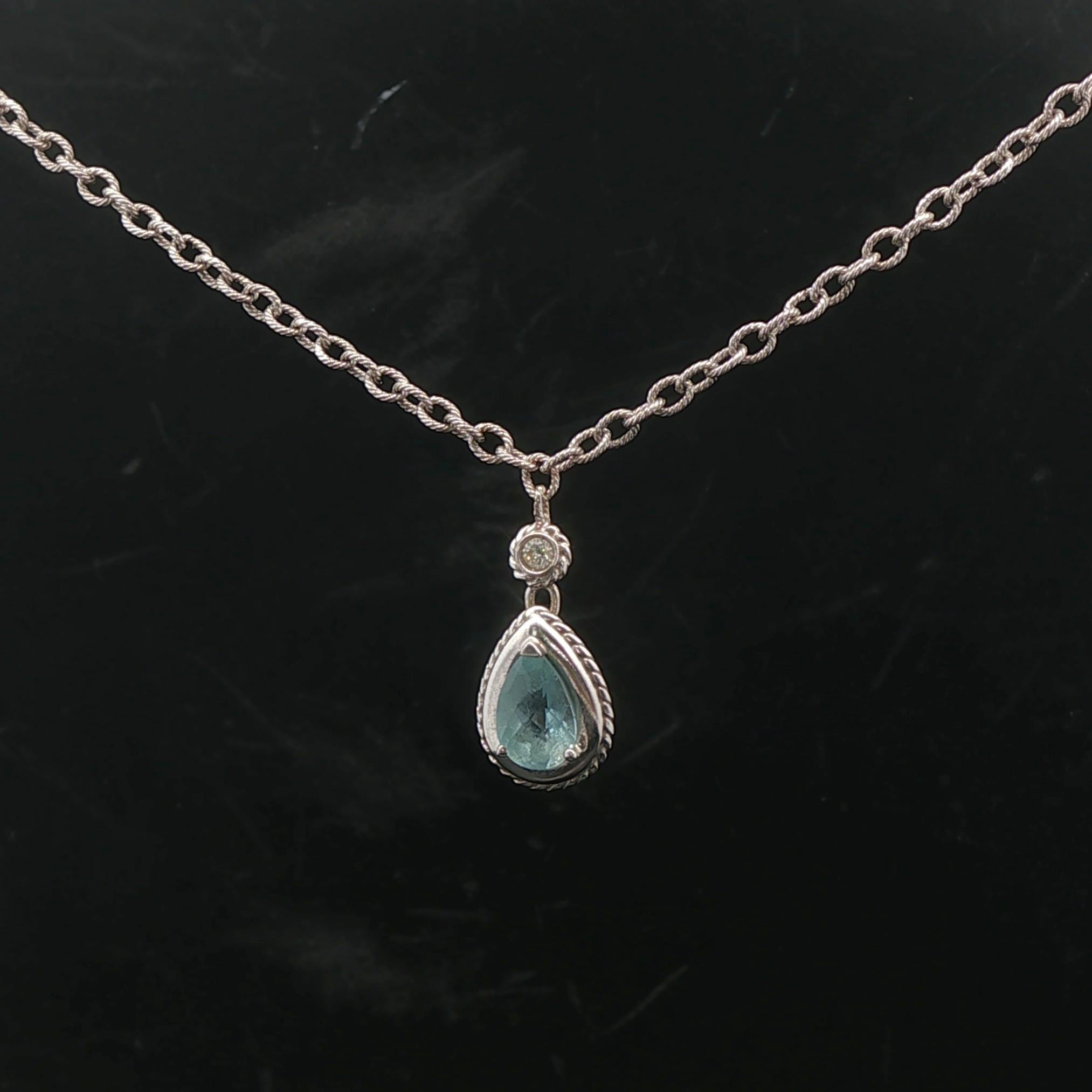 14k White Gold Aquamarine and Diamond 8.7g Ladies Pendant Necklace Italy 16"