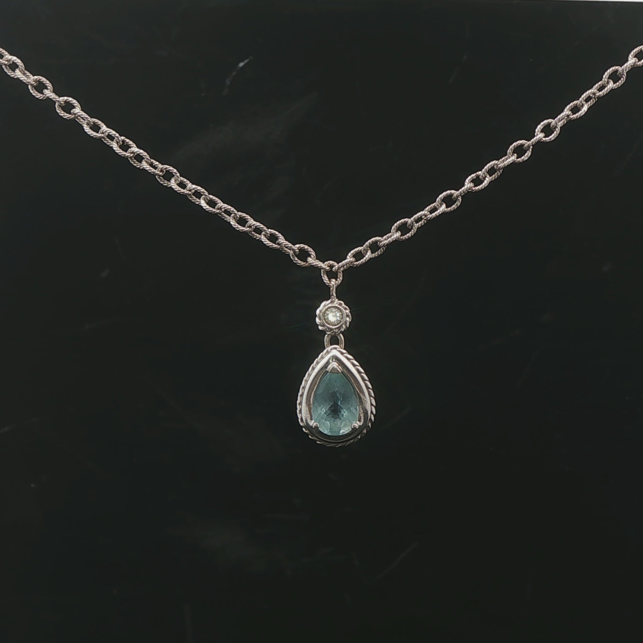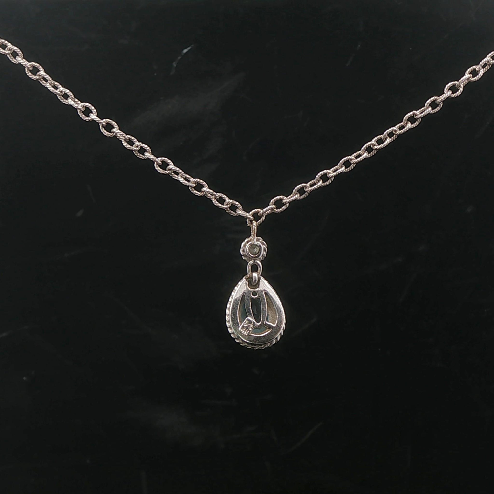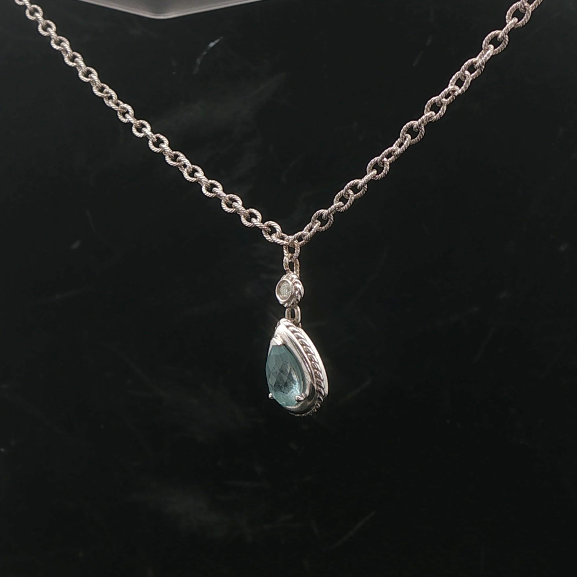 14k White Gold Aquamarine and Diamond 8.7g Ladies Pendant Necklace Italy 16"