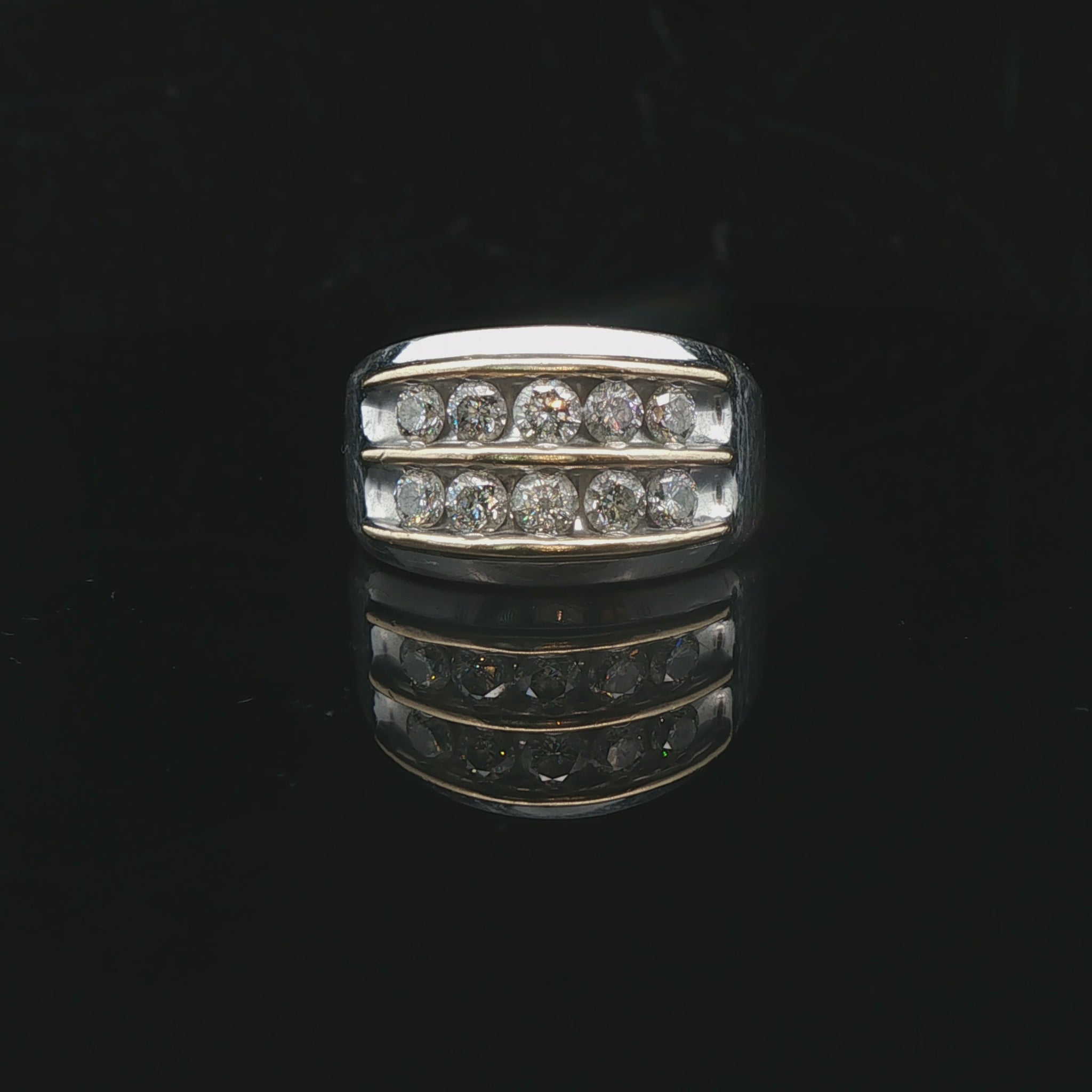 10k White and Yellow Gold 1.5cttw Diamond Men's Heavy Ring Size 10