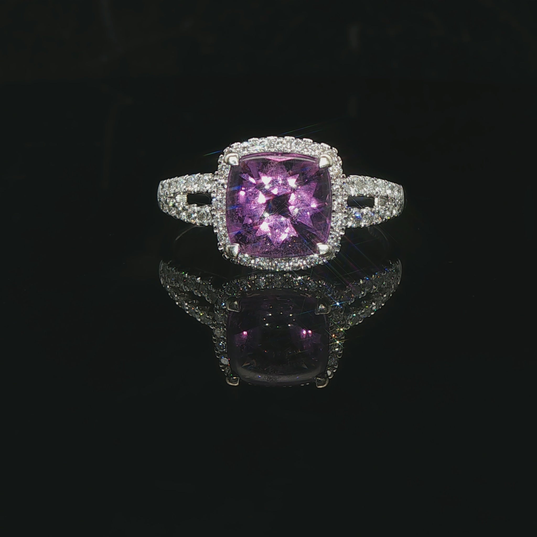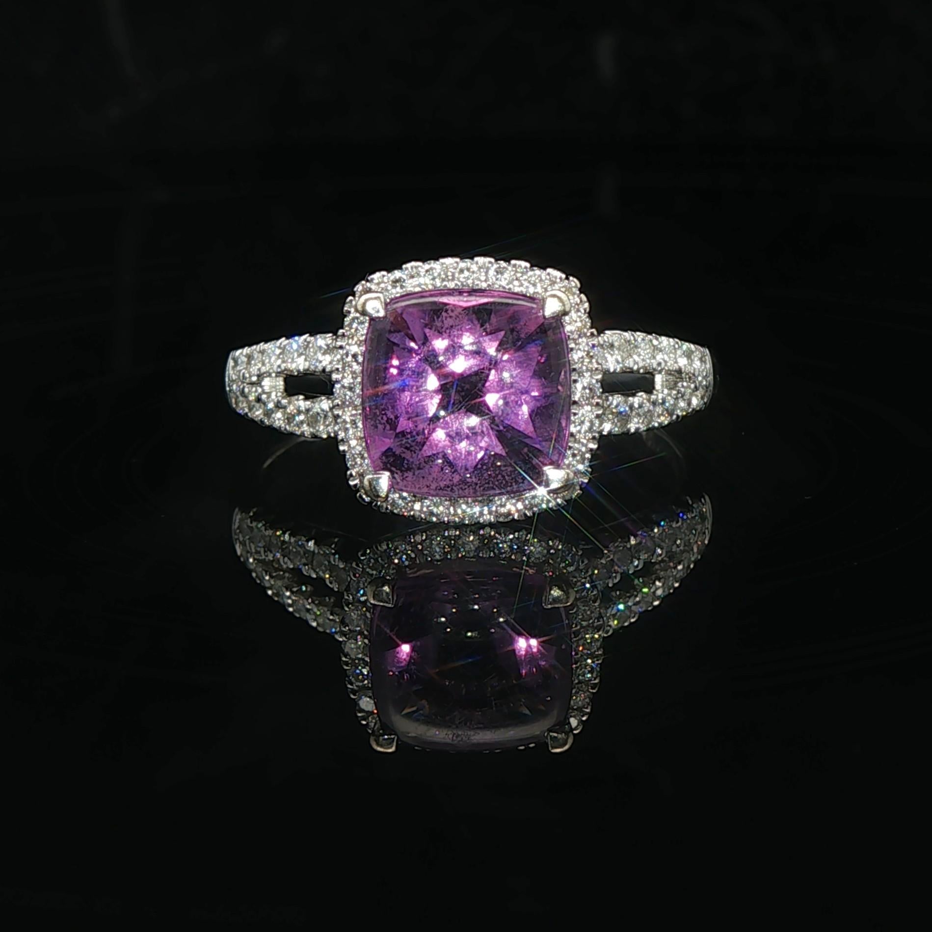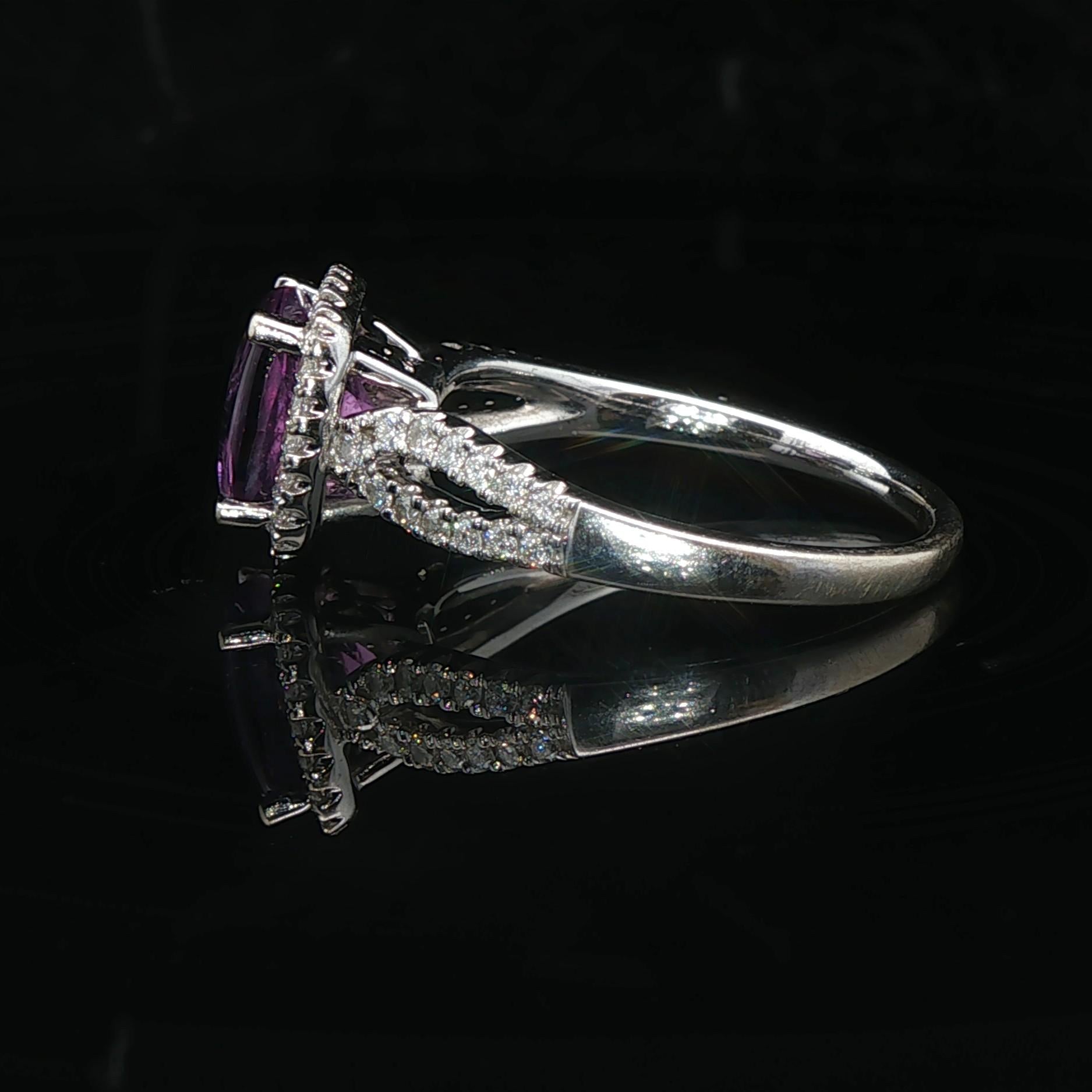 14k White Gold Amethyst and 0.38cttw Diamond Halo Ring Size 7.75