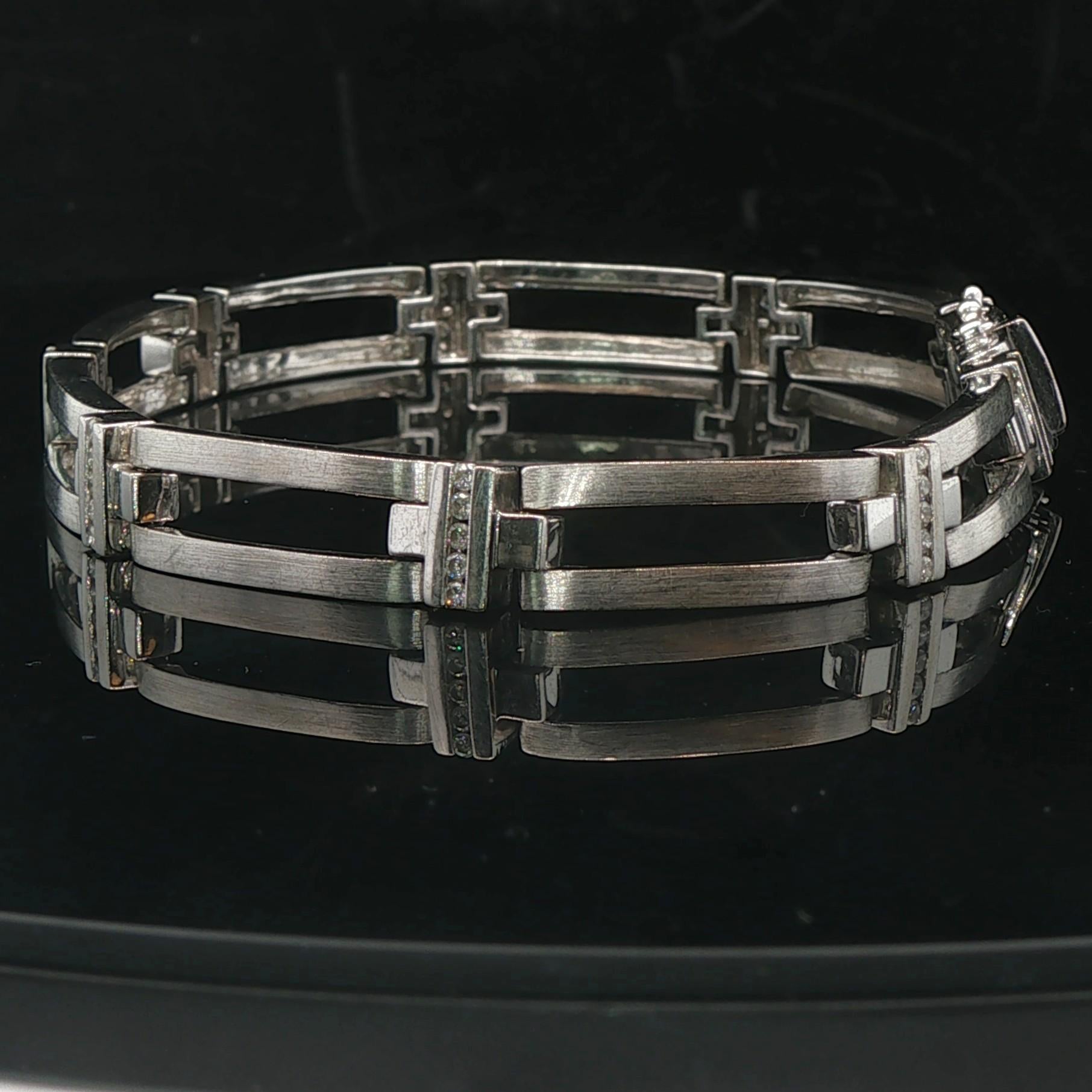 14k White Gold and 0.50cttw Diamond 22g Men's Bar Link Bracelet 8.5"