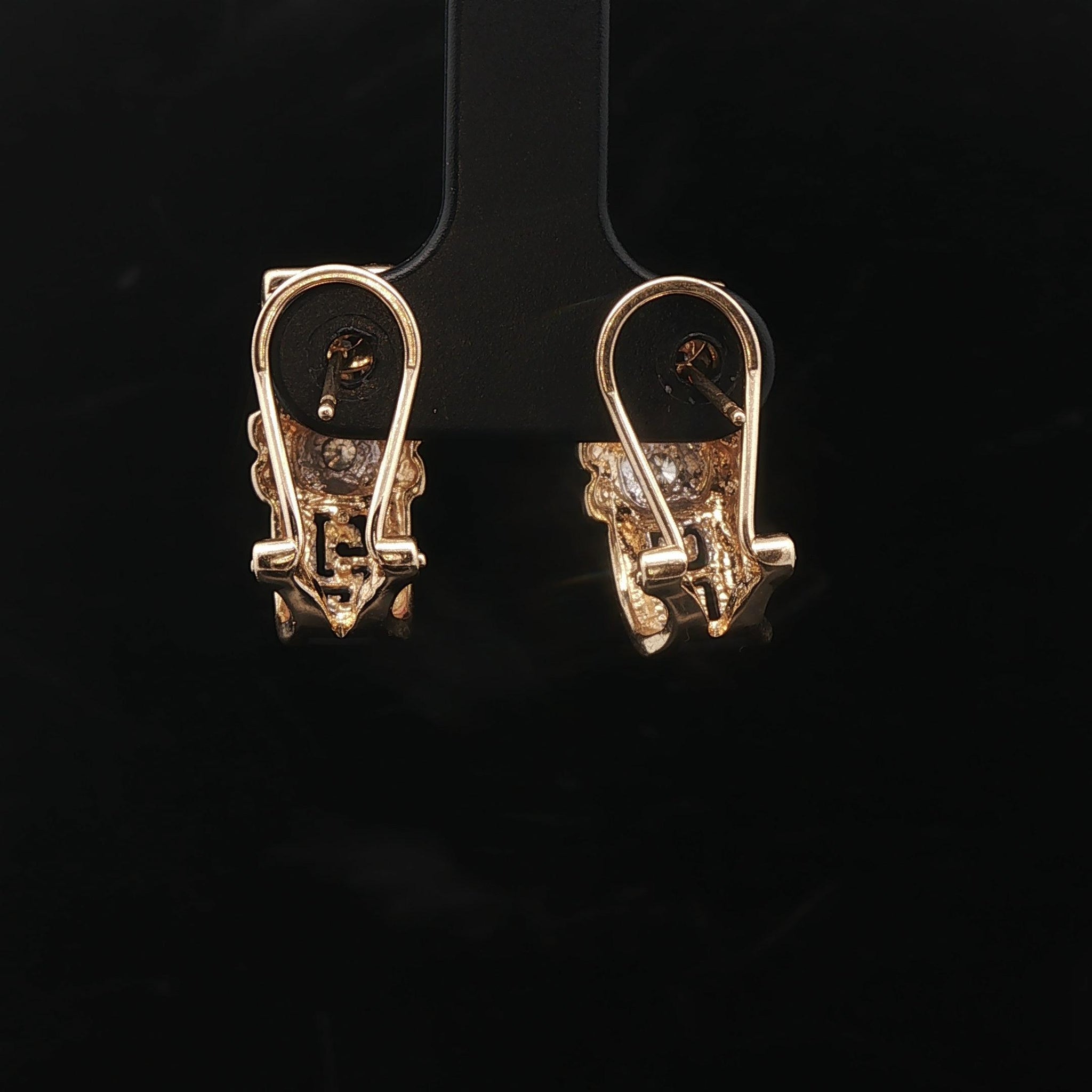 14k Yellow and White Gold Diamond Greek Key Huggie Earrings