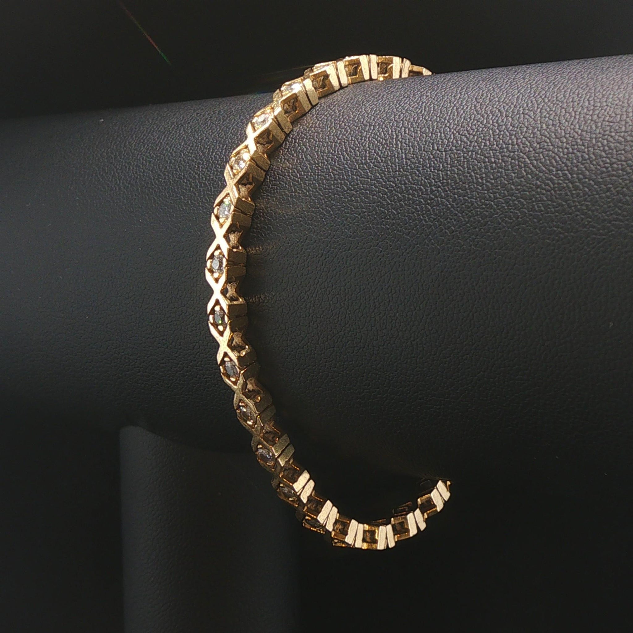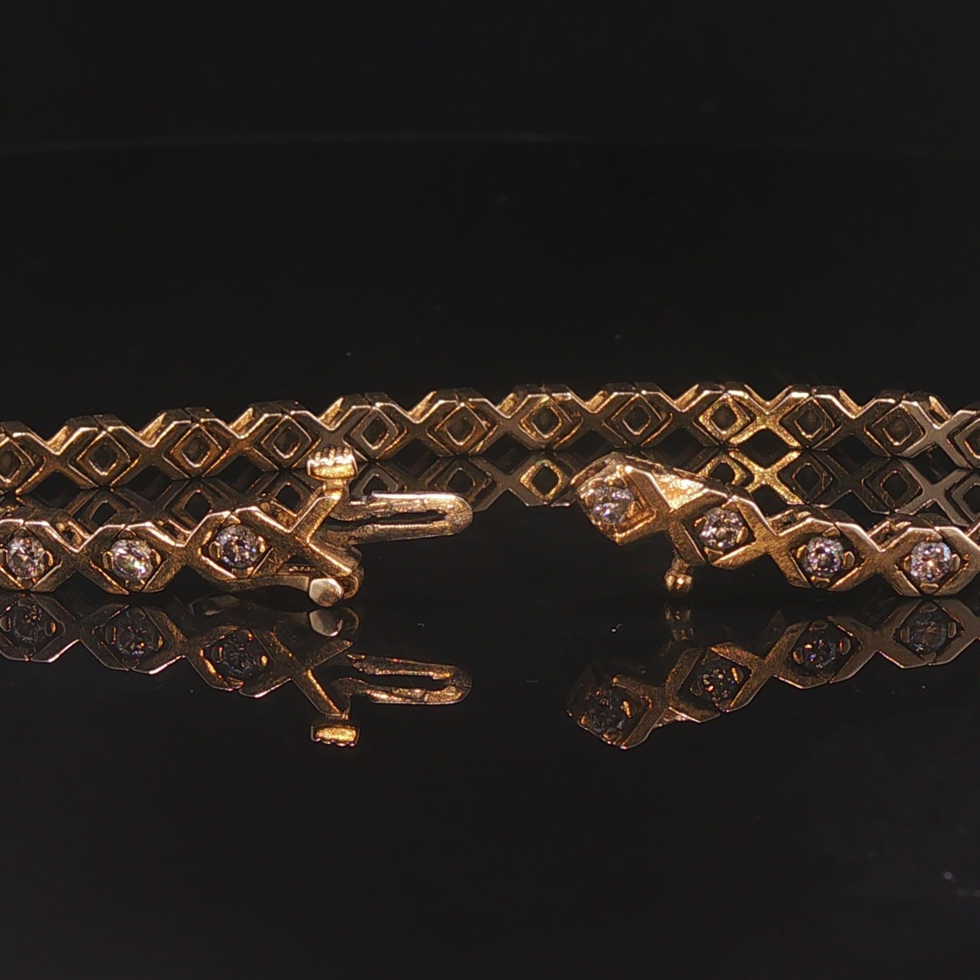 14k Yellow Gold 16g Solid Ladies 1.75cttw Diamond Vintage X Link Bracelet 7"