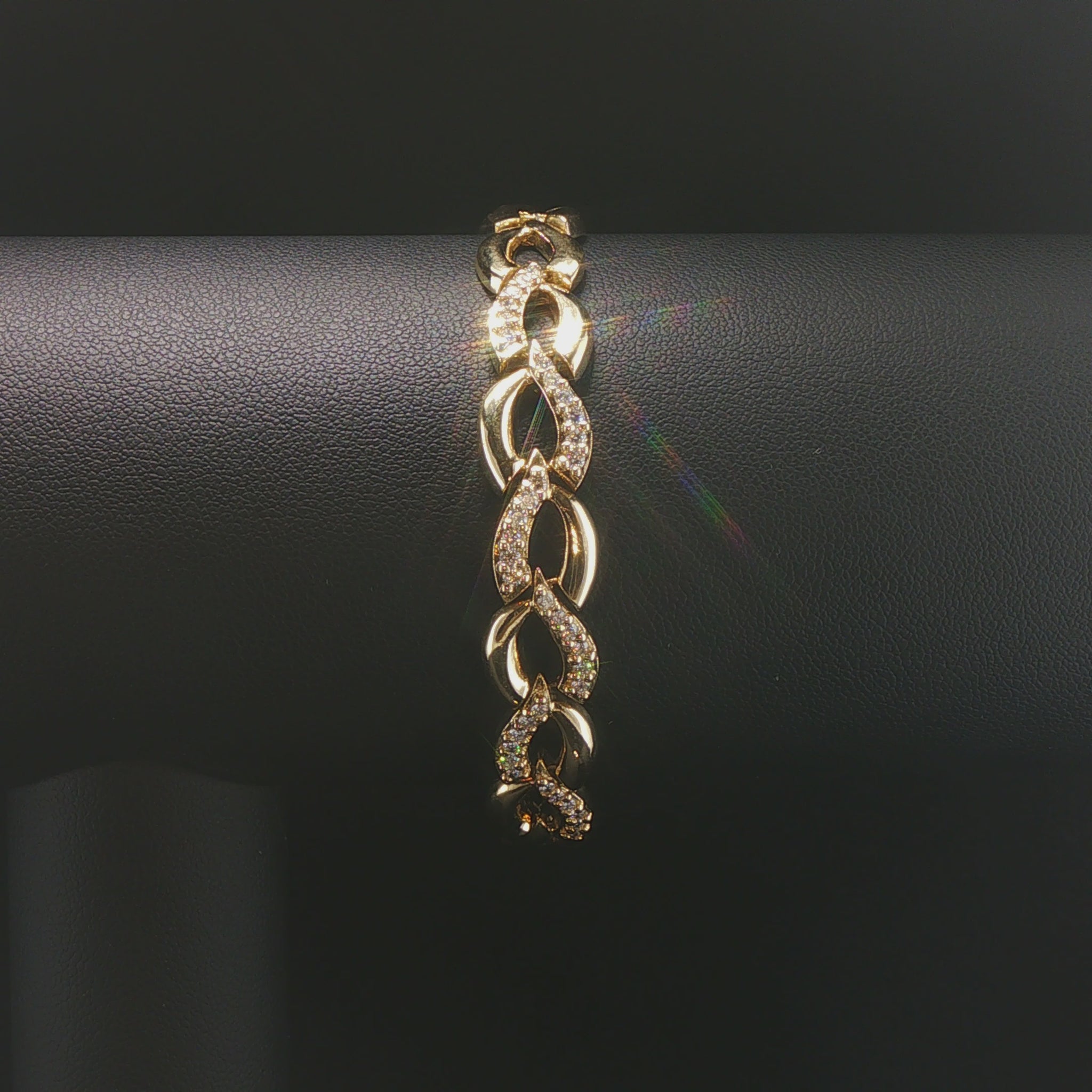 14k Yellow Gold 23.7g Solid Ladies 1cttw Diamond Fancy Link Bracelet 7"