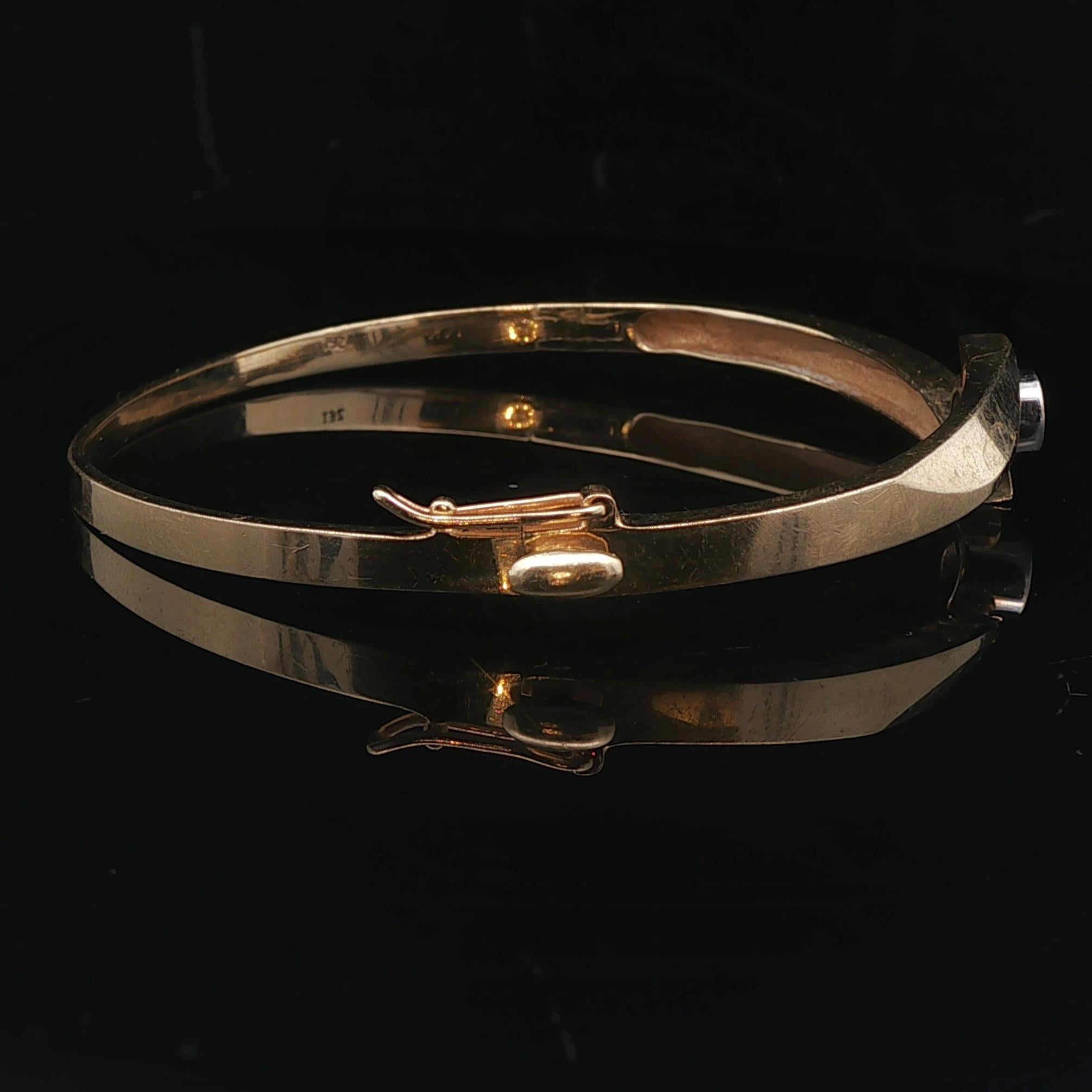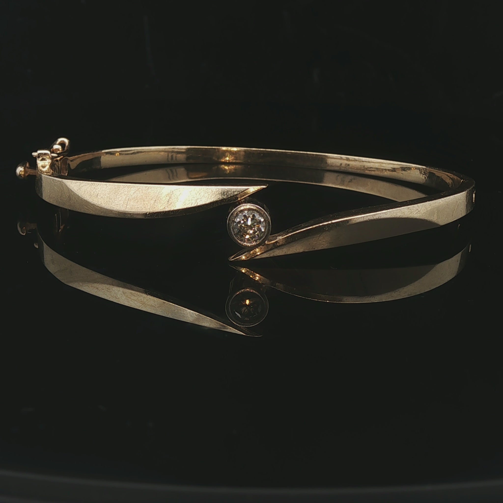 14k Yellow Gold and 0.25ct Bezel Set Diamond Bypass Bangle Bracelet 7"