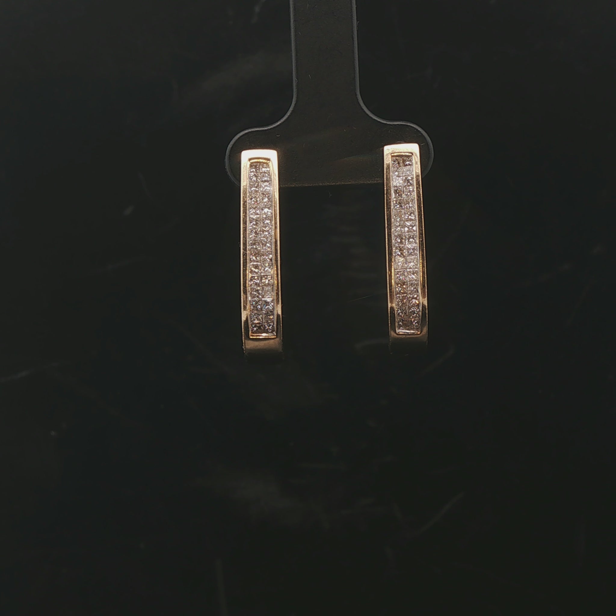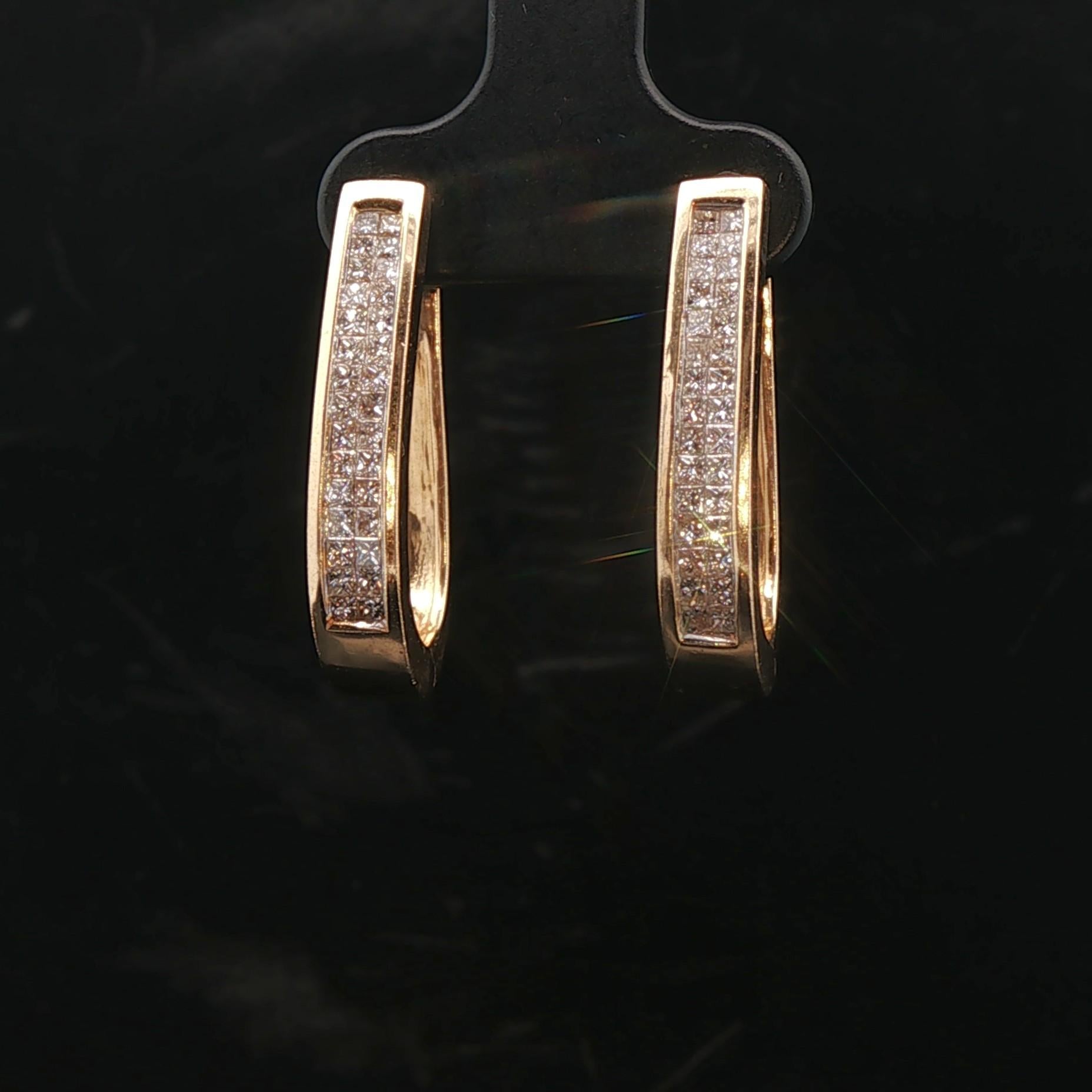 14k Yellow Gold and 1cttw Princess Cut Diamond Hoop Earrings 1"
