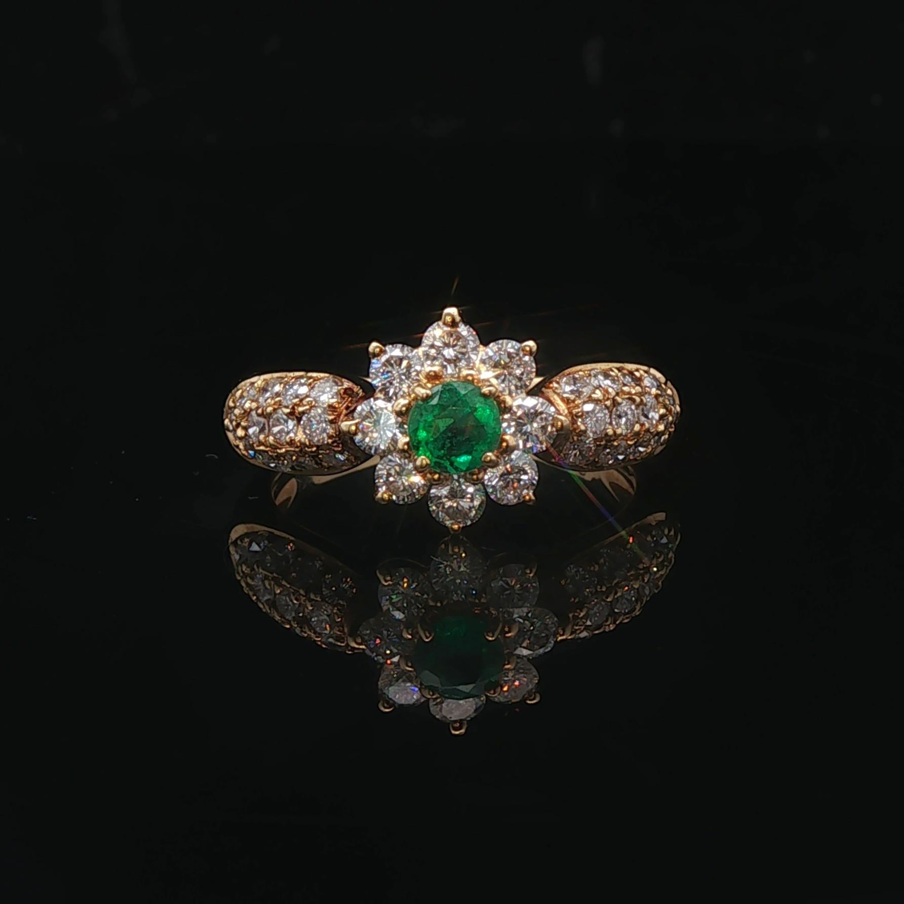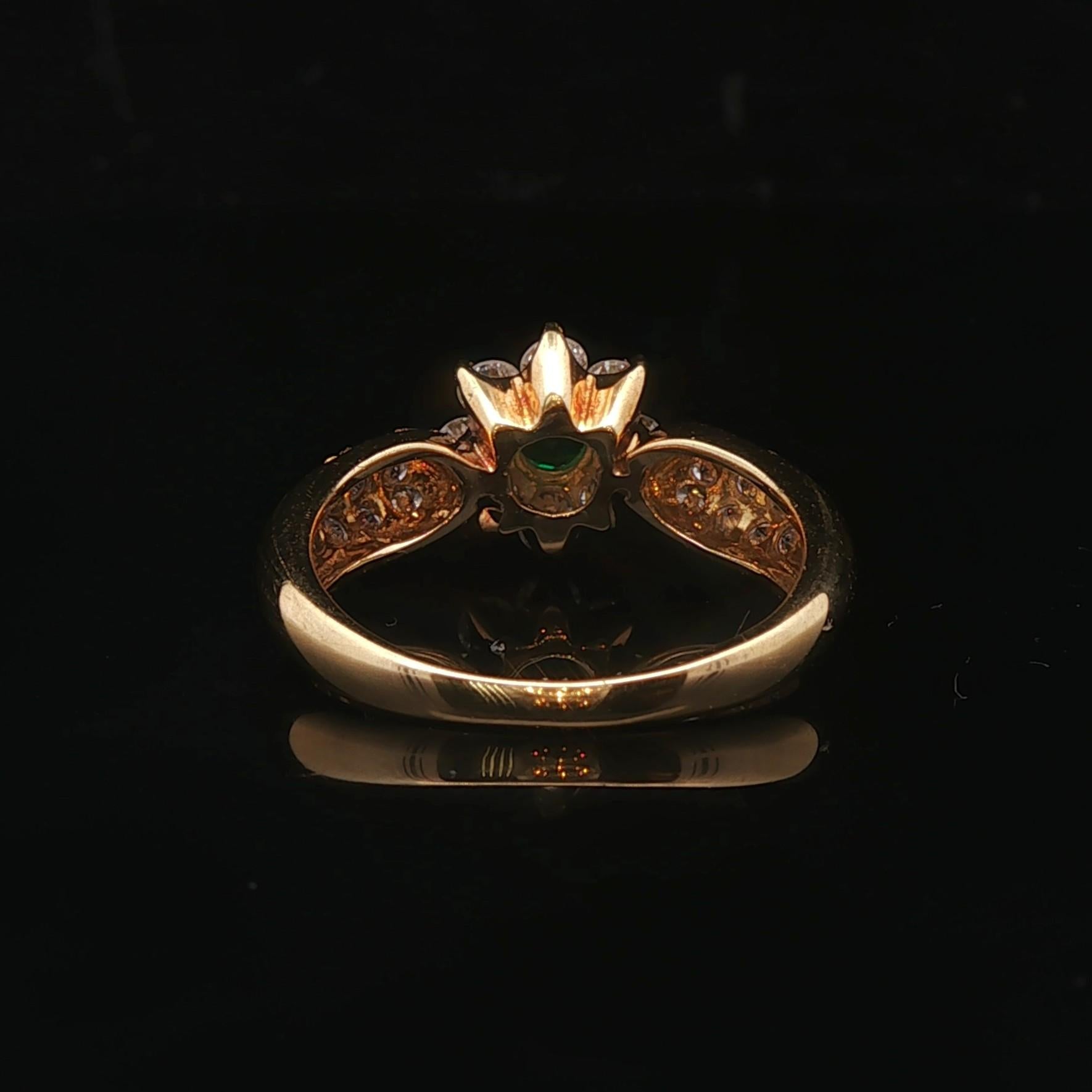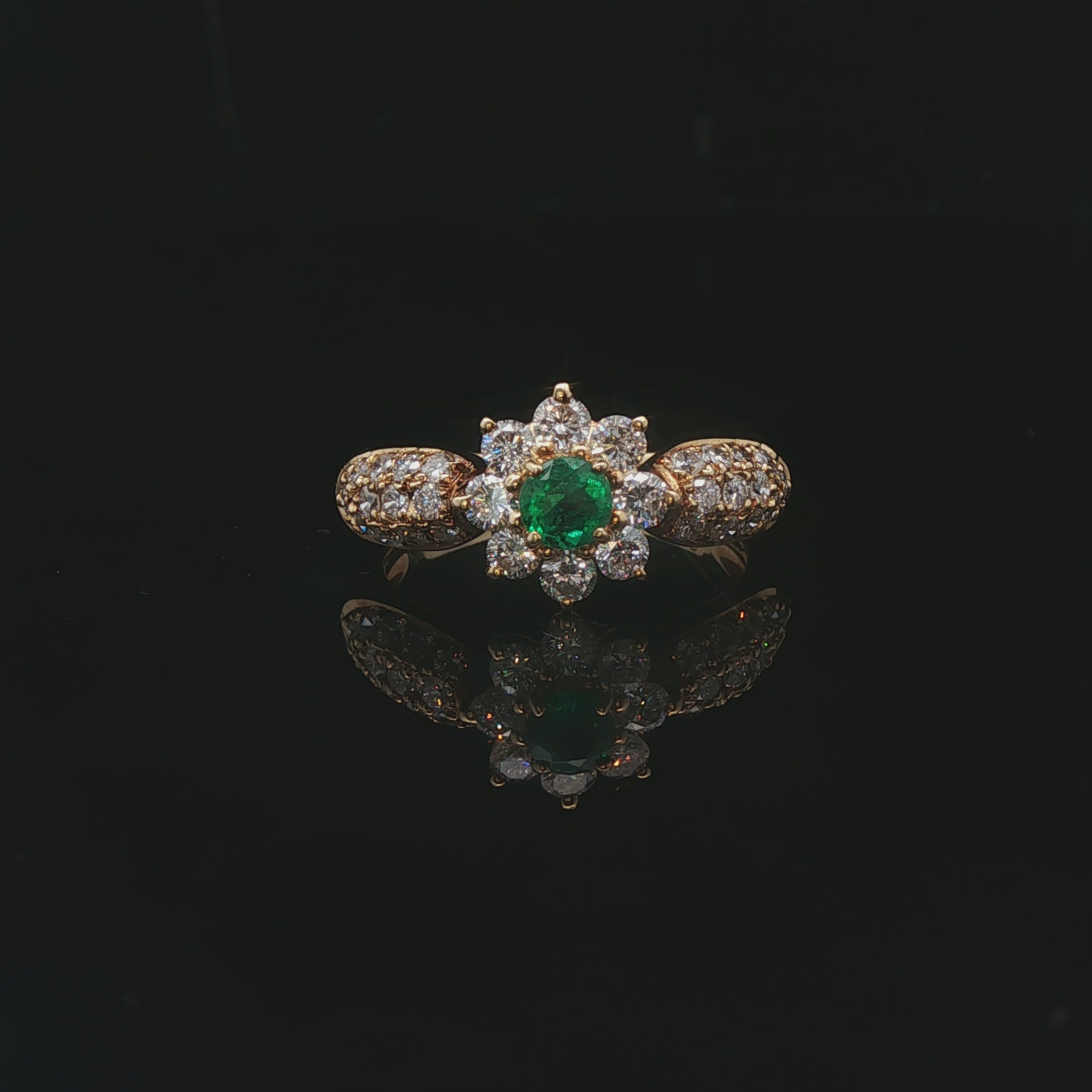 18k Yellow Gold Emerald and 0.70cttw Diamond Floral Halo Ring Size 5