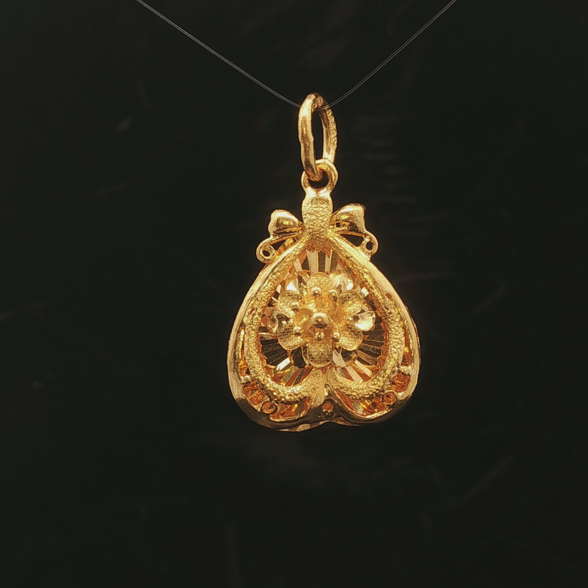 24k Pure Yellow Gold 6.5g Solid Diamond Cut Floral Heart Pendant