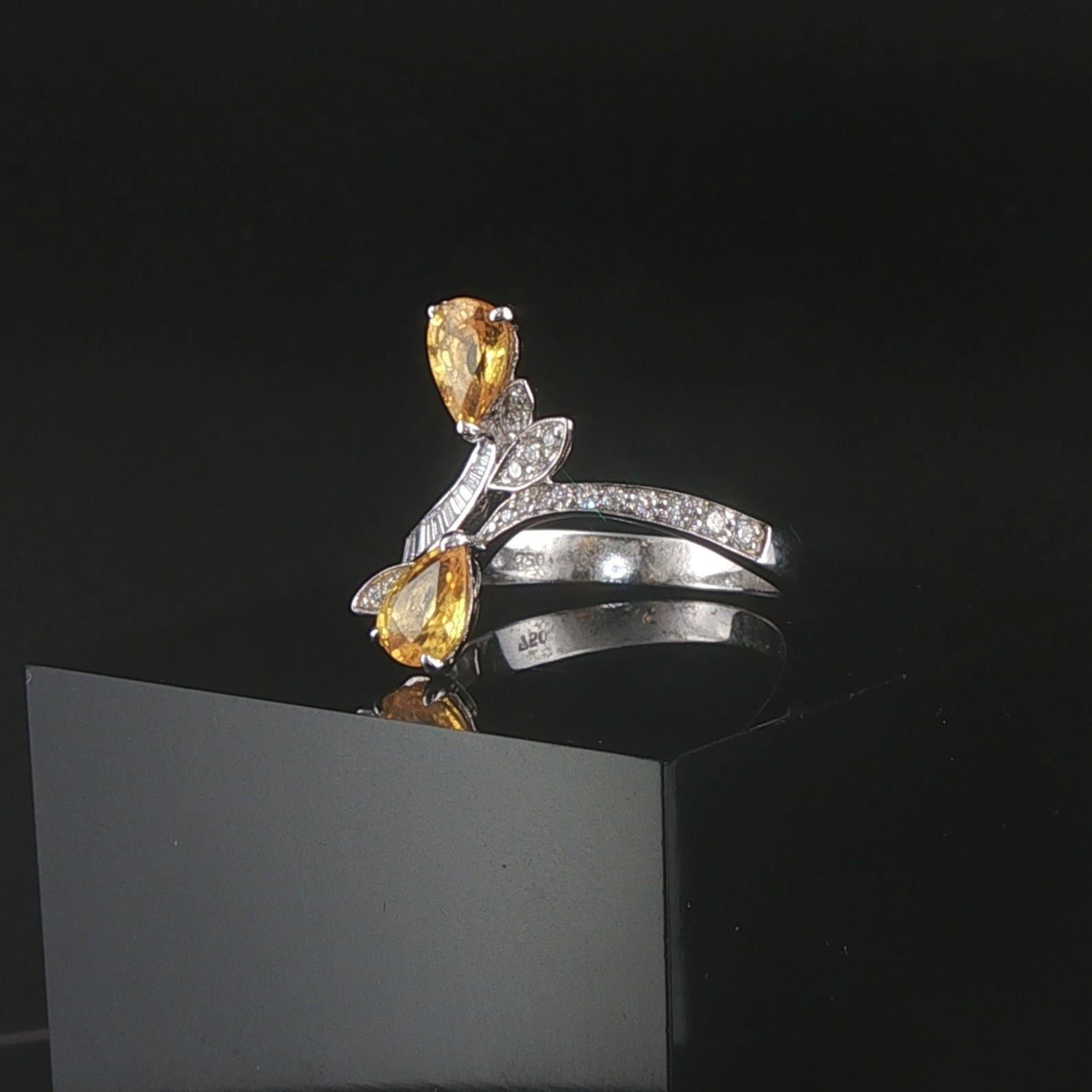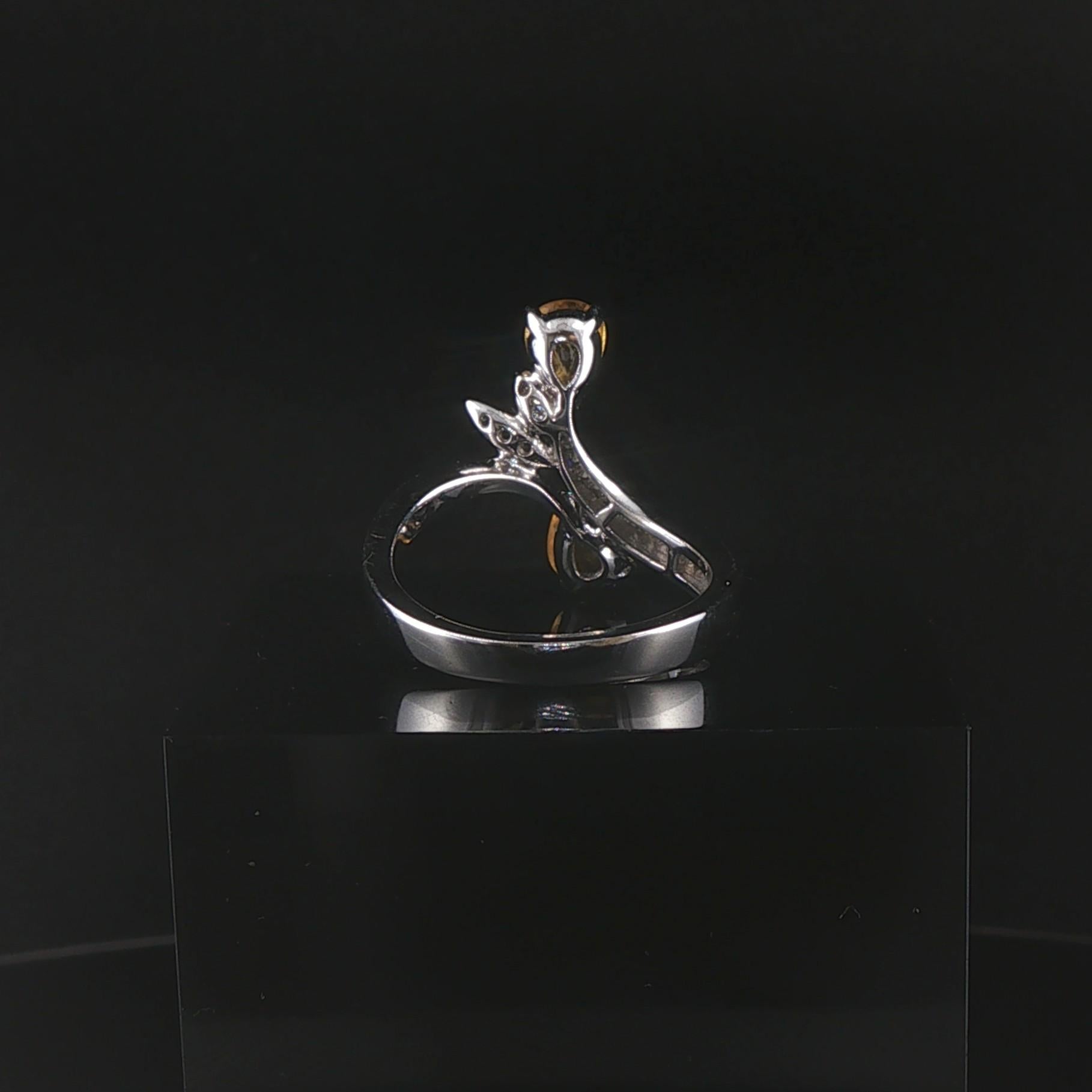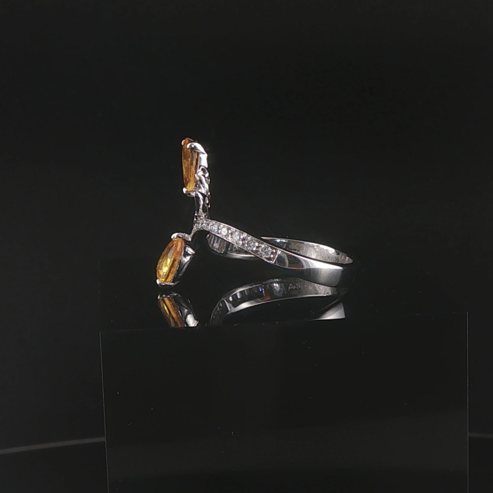 Salavetti 18k White Gold Yellow Sapphire and Diamond Bypass Ring Size 7.25