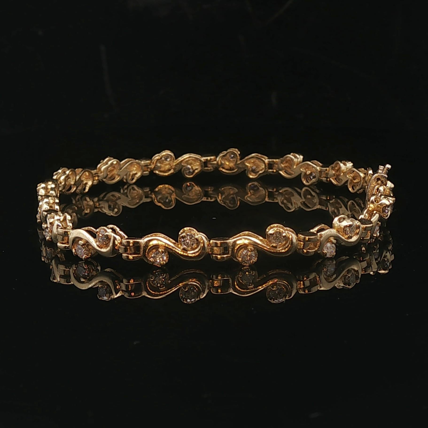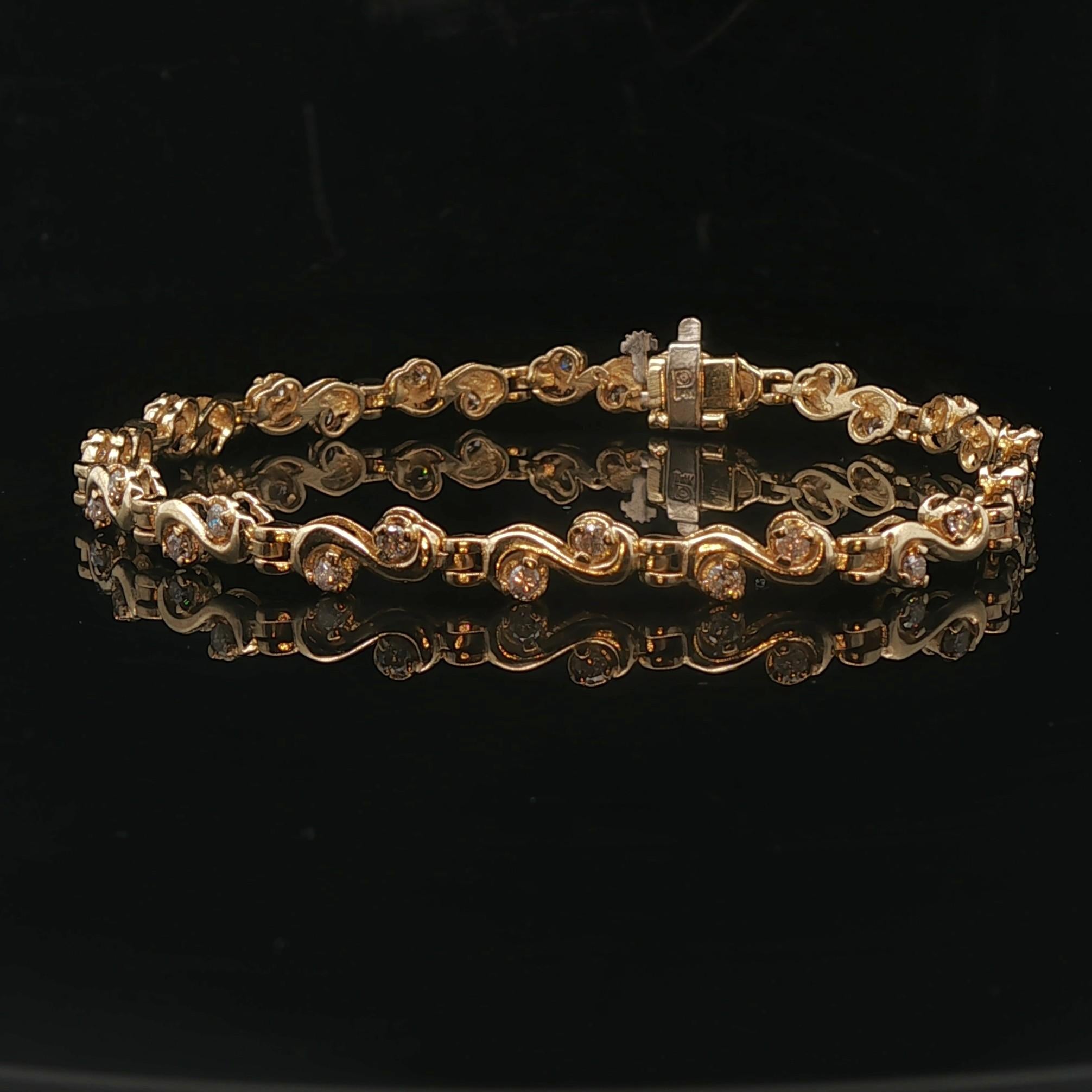 14k Yellow Gold and 1cttw Diamond 8.2g Ladies Fancy Link Bracelet 7"