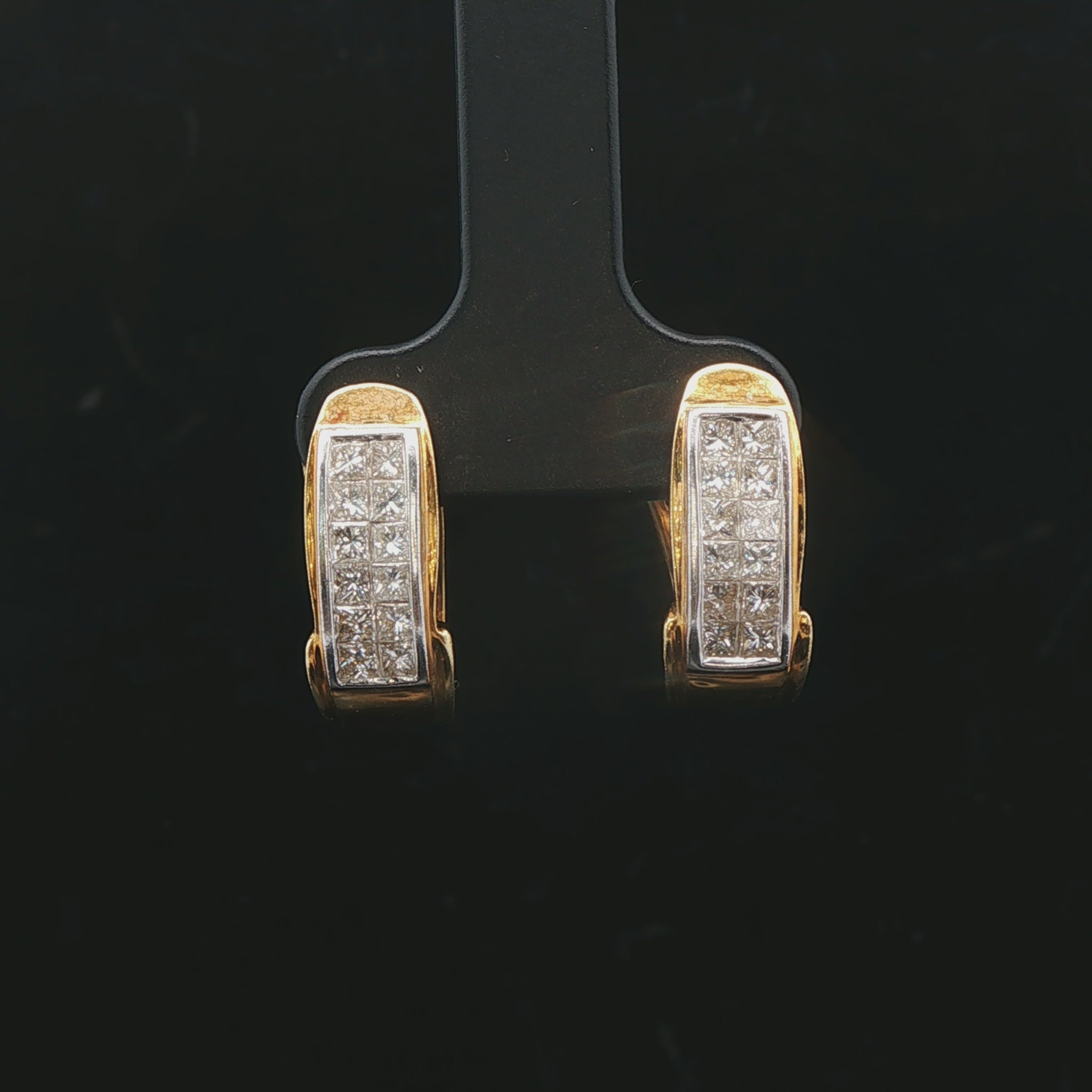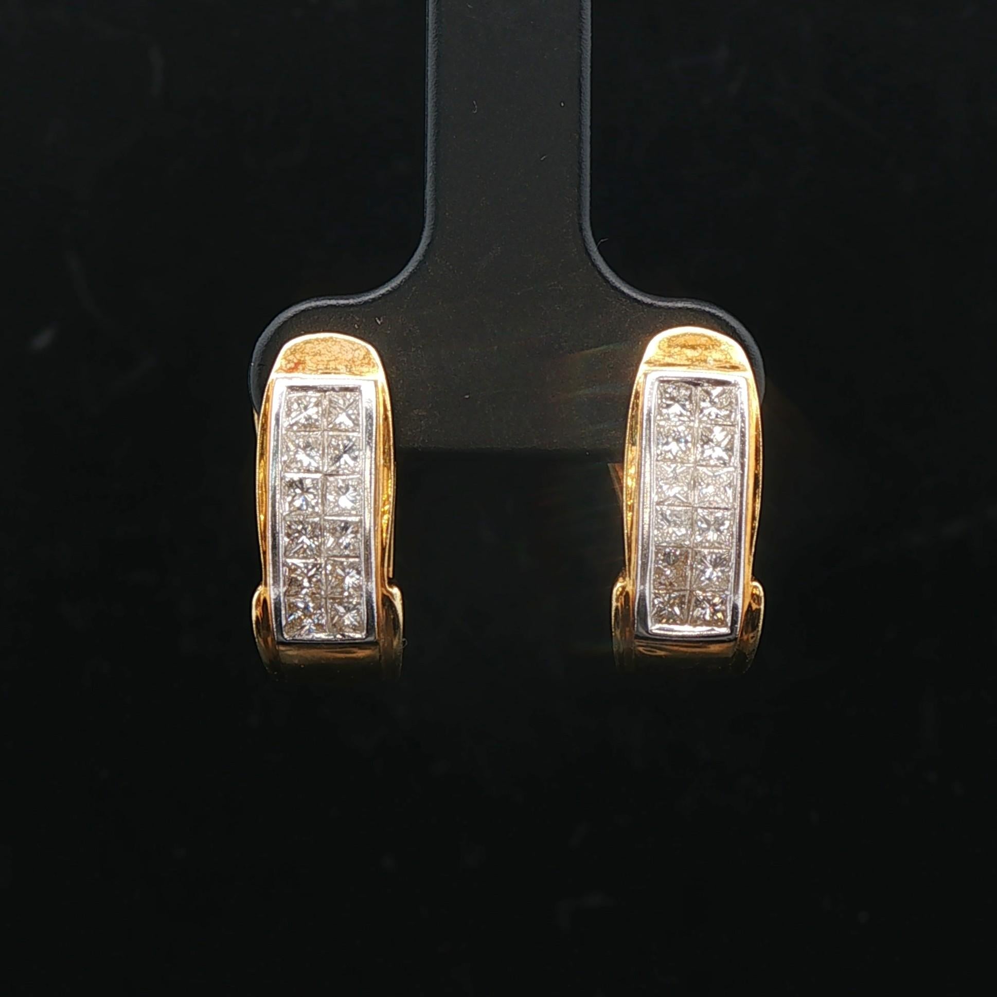 18k Yellow Gold and 2cttw Princess Cut Diamond Vintage Huggie Earrings