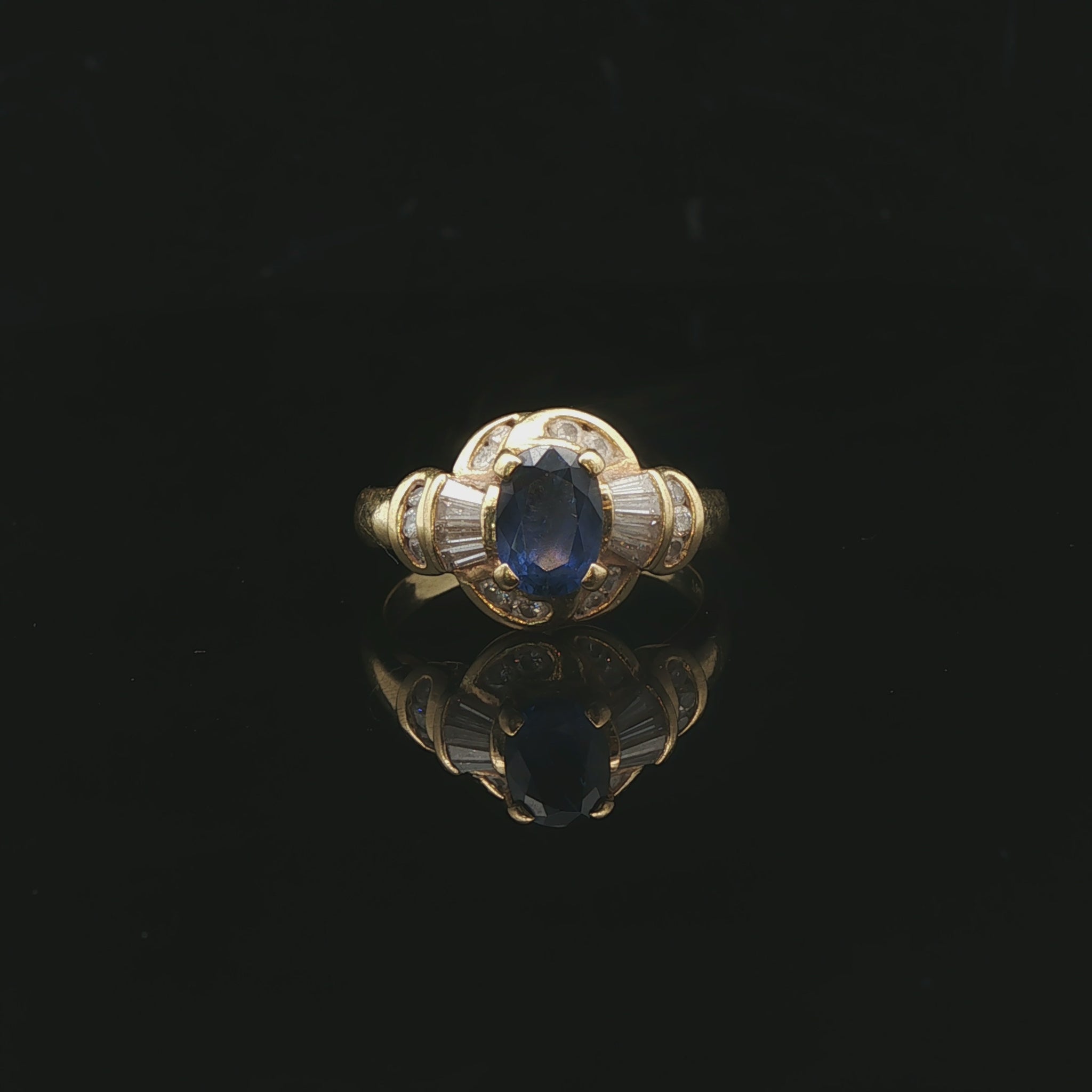 18k Yellow Gold Blue Sapphire and 0.75cttw Diamond Ladies Ring Size 6
