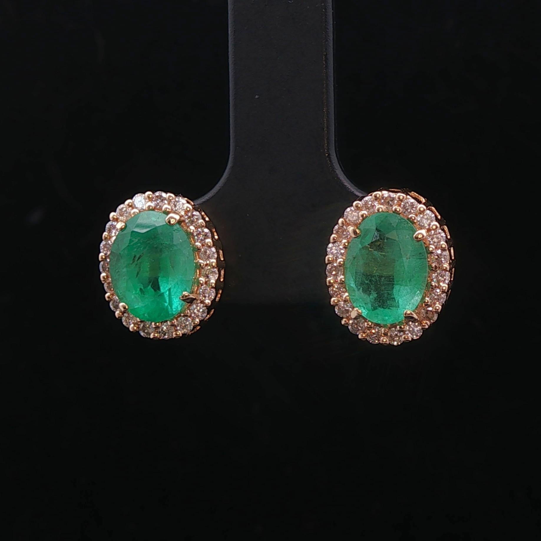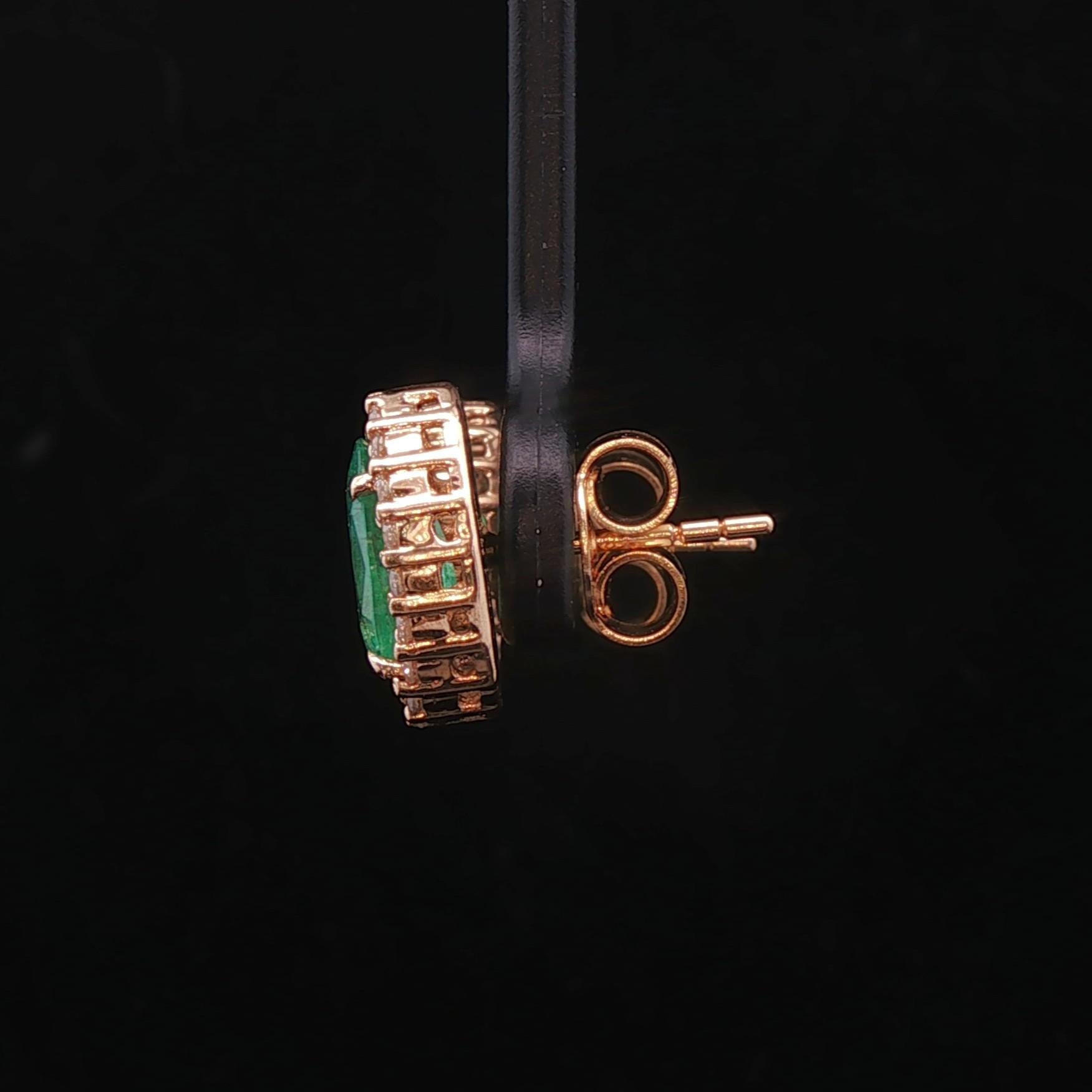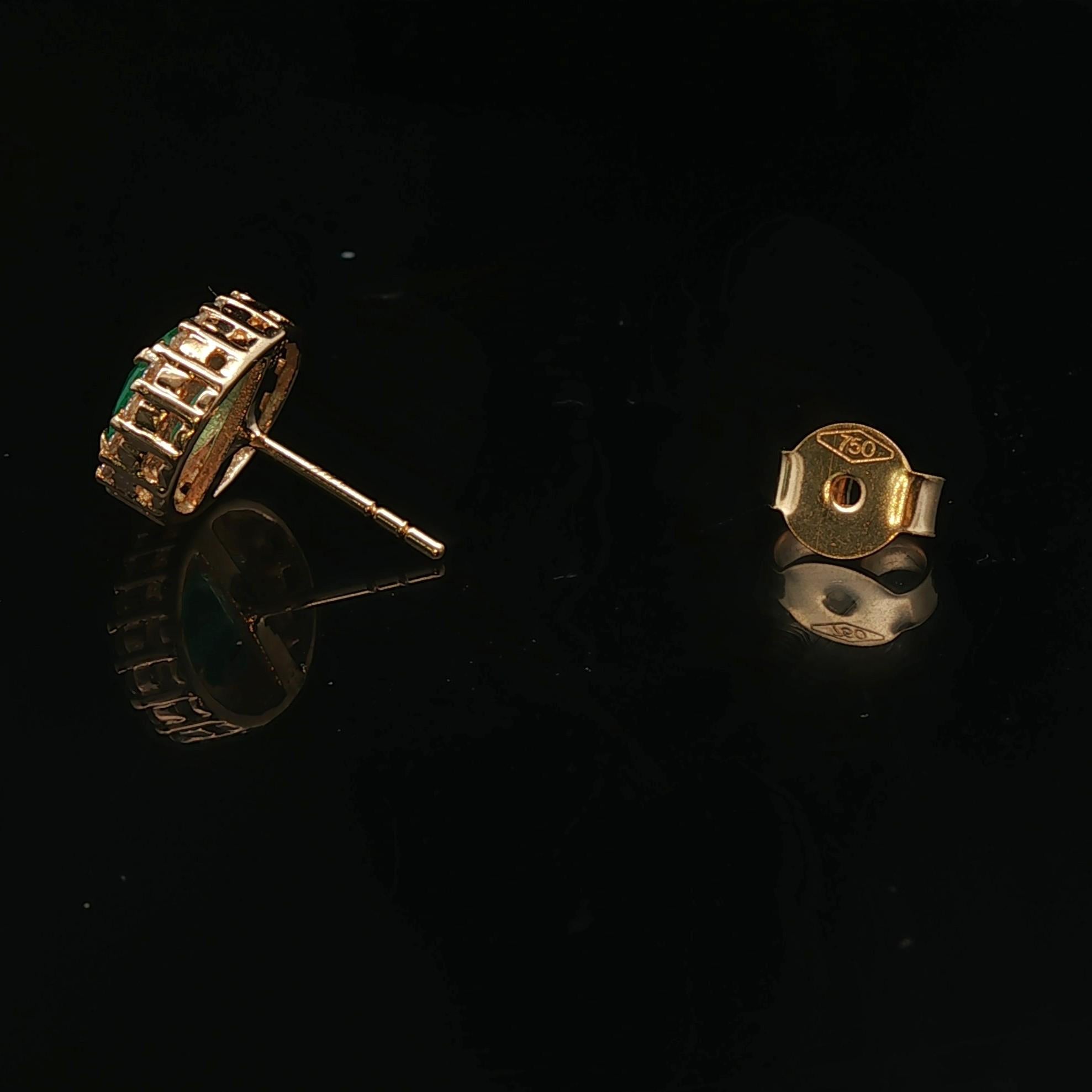 18k Yellow Gold Emerald and 0.56cttw Diamond Halo Stud Earrings