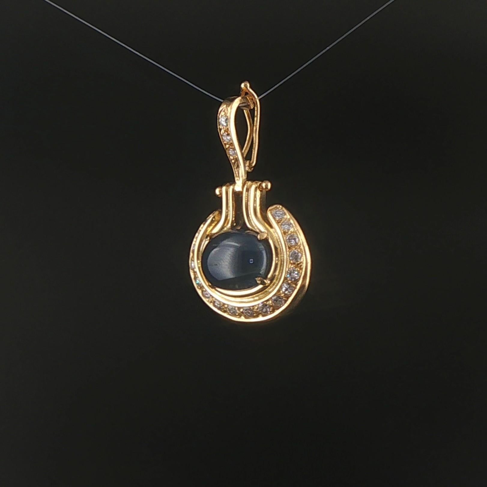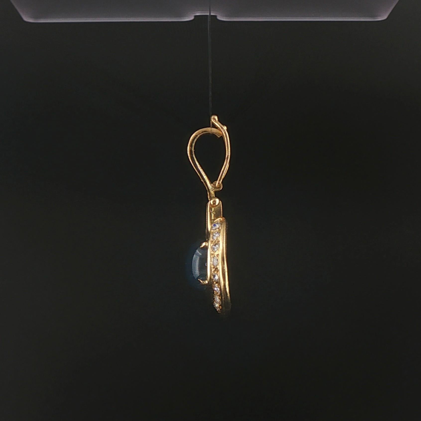 18k Yellow Gold 4.15ct Cabochon Sapphire and Diamond Vintage Pendant 1.3"