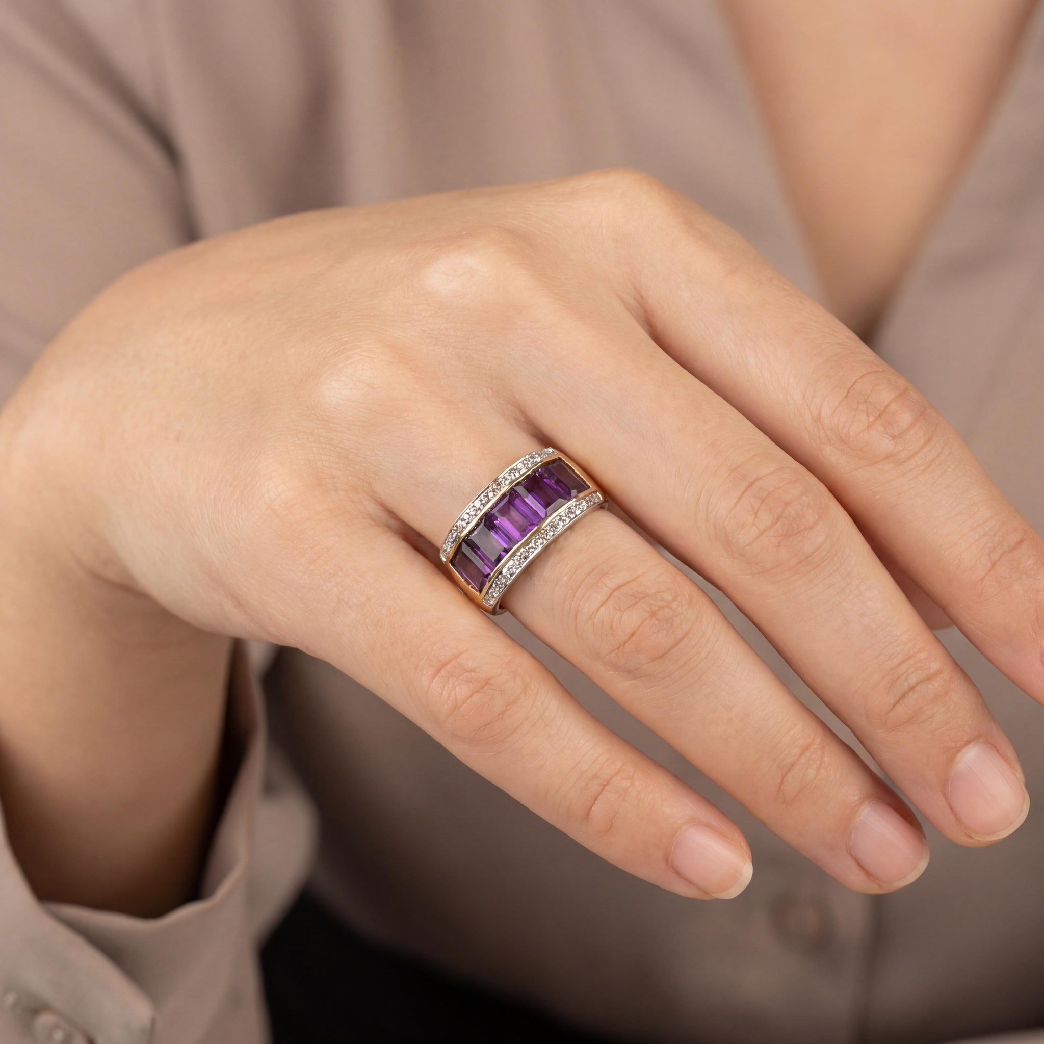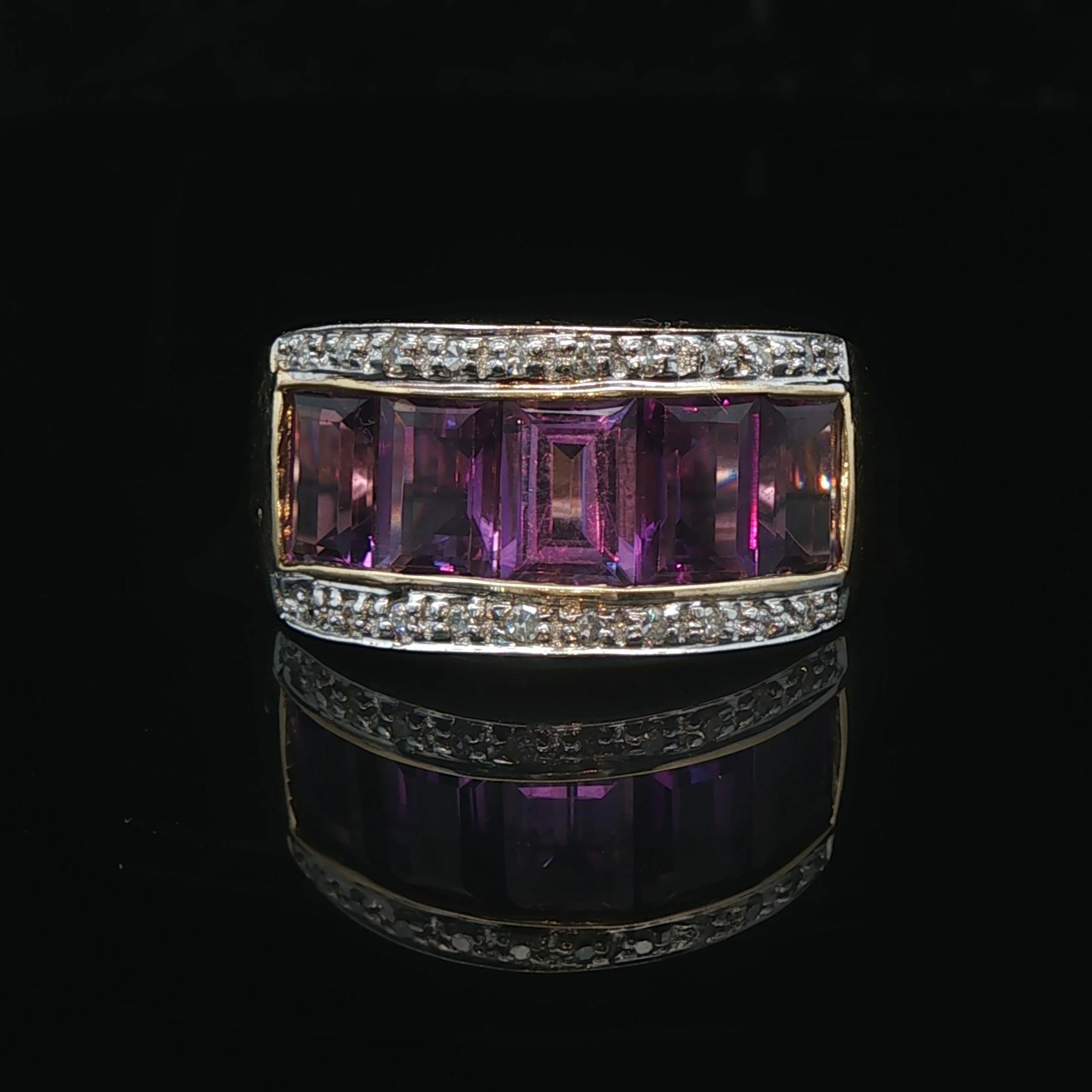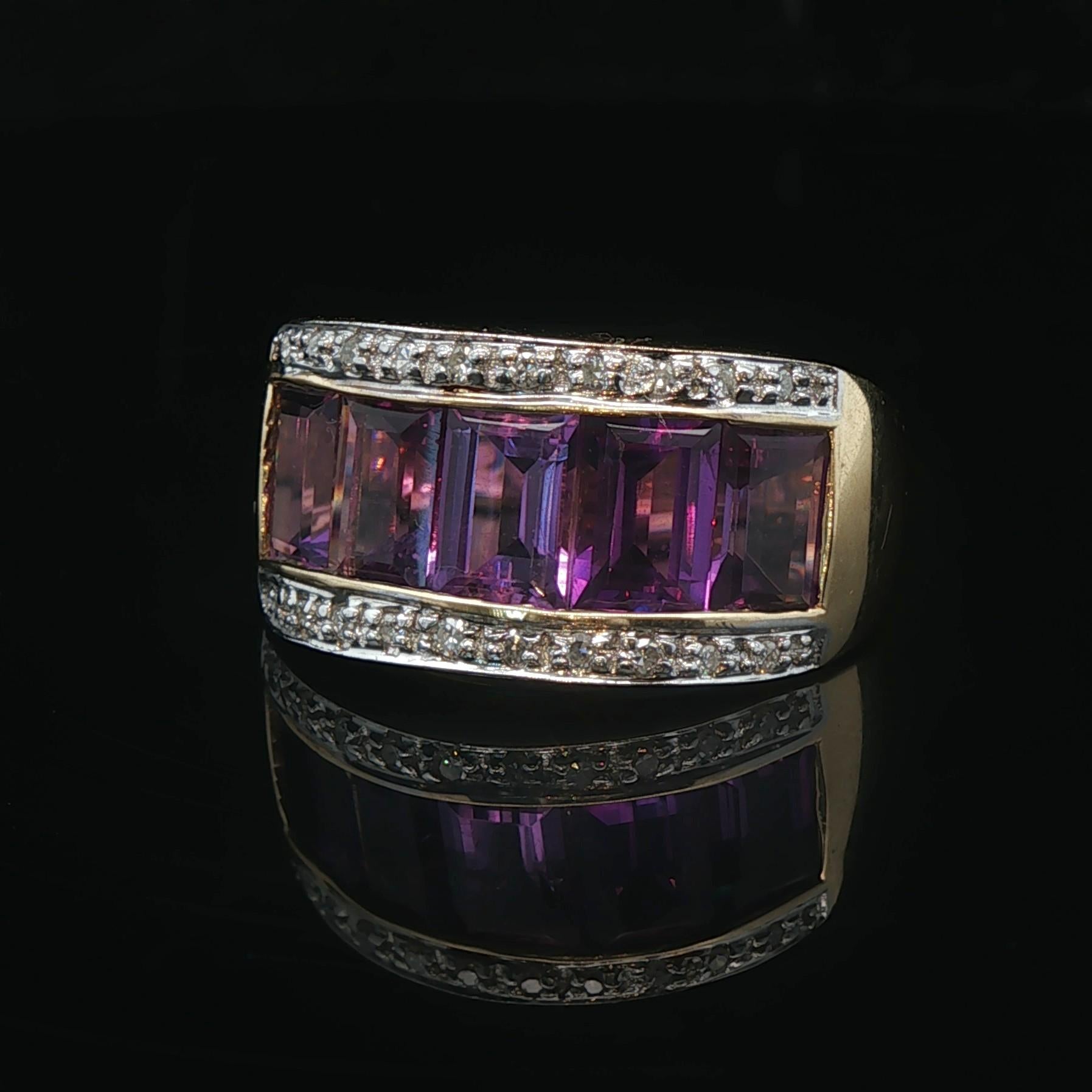 14k Yellow Gold Amethyst and Diamond Ladies Band Ring Size 6