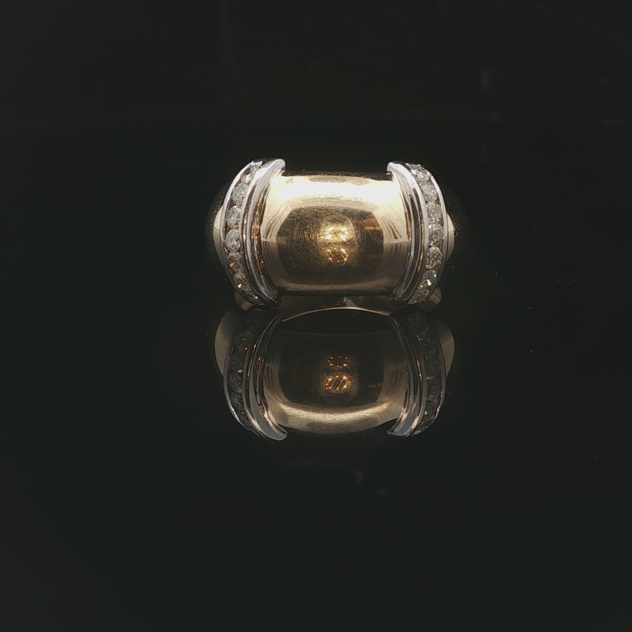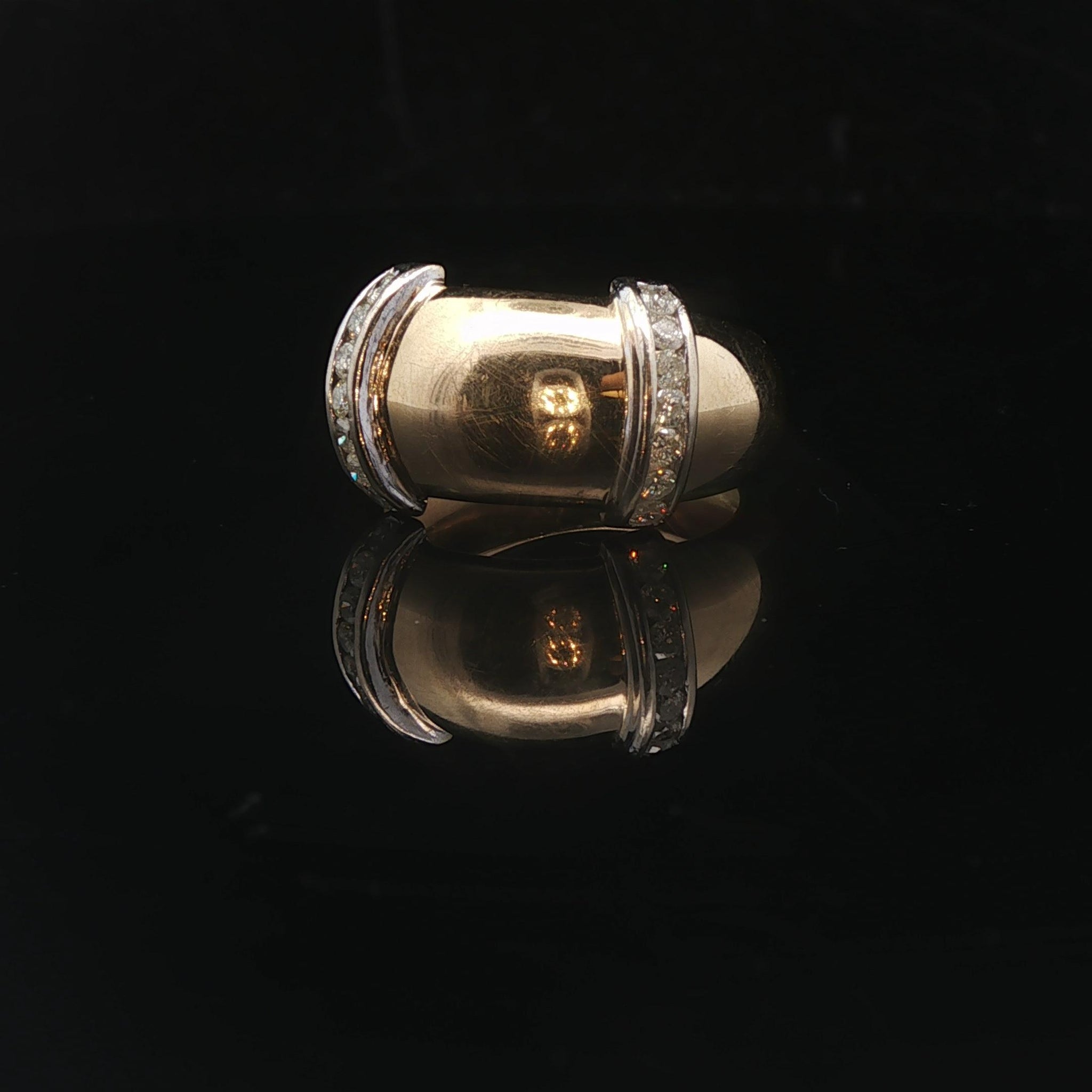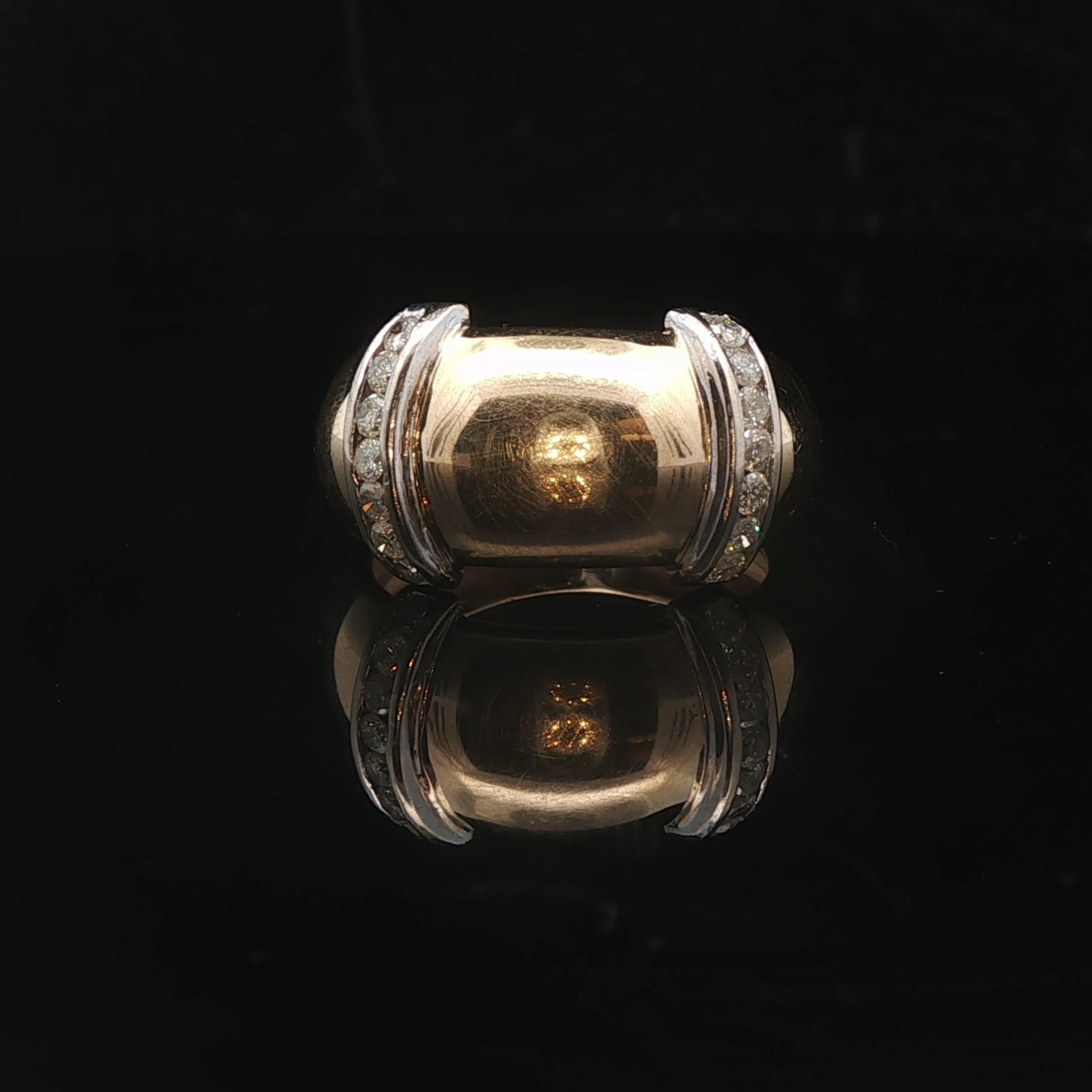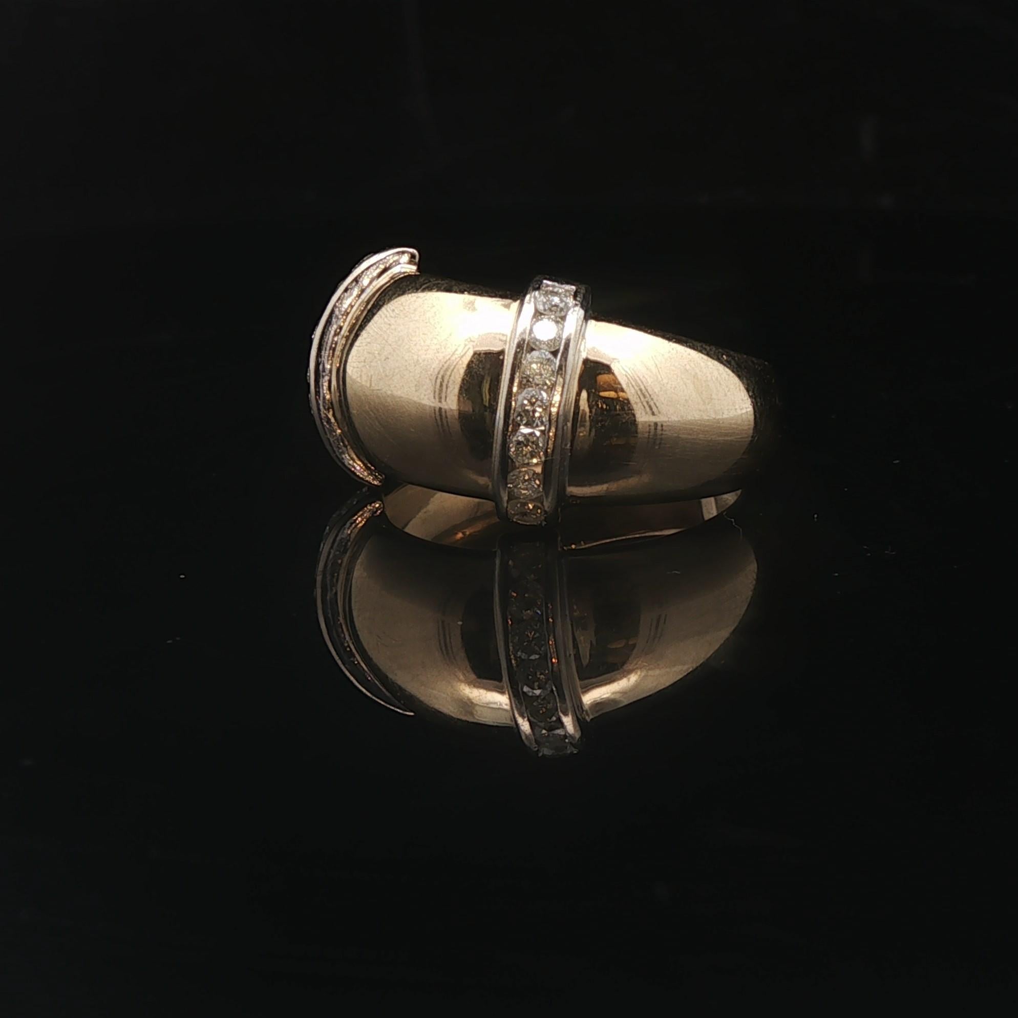 18k Yellow and White Gold Diamond Fancy Band Ring Size 6.75