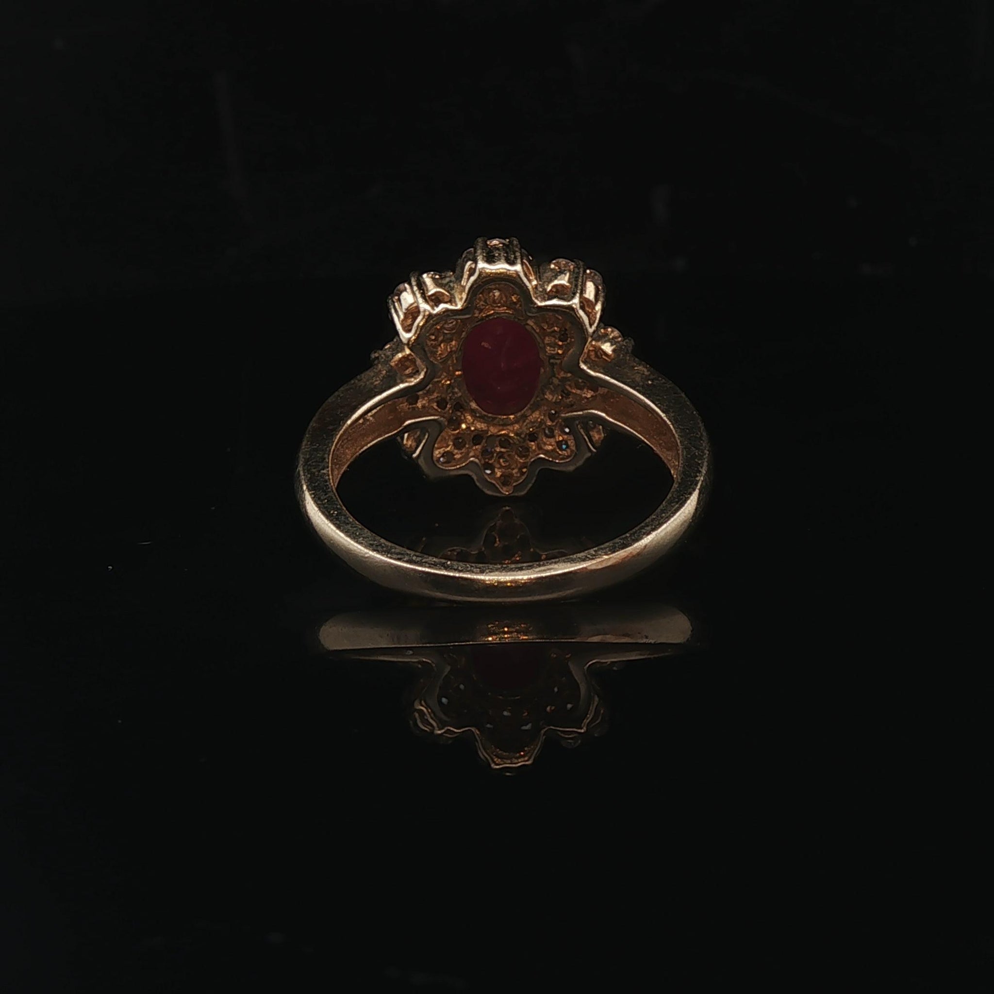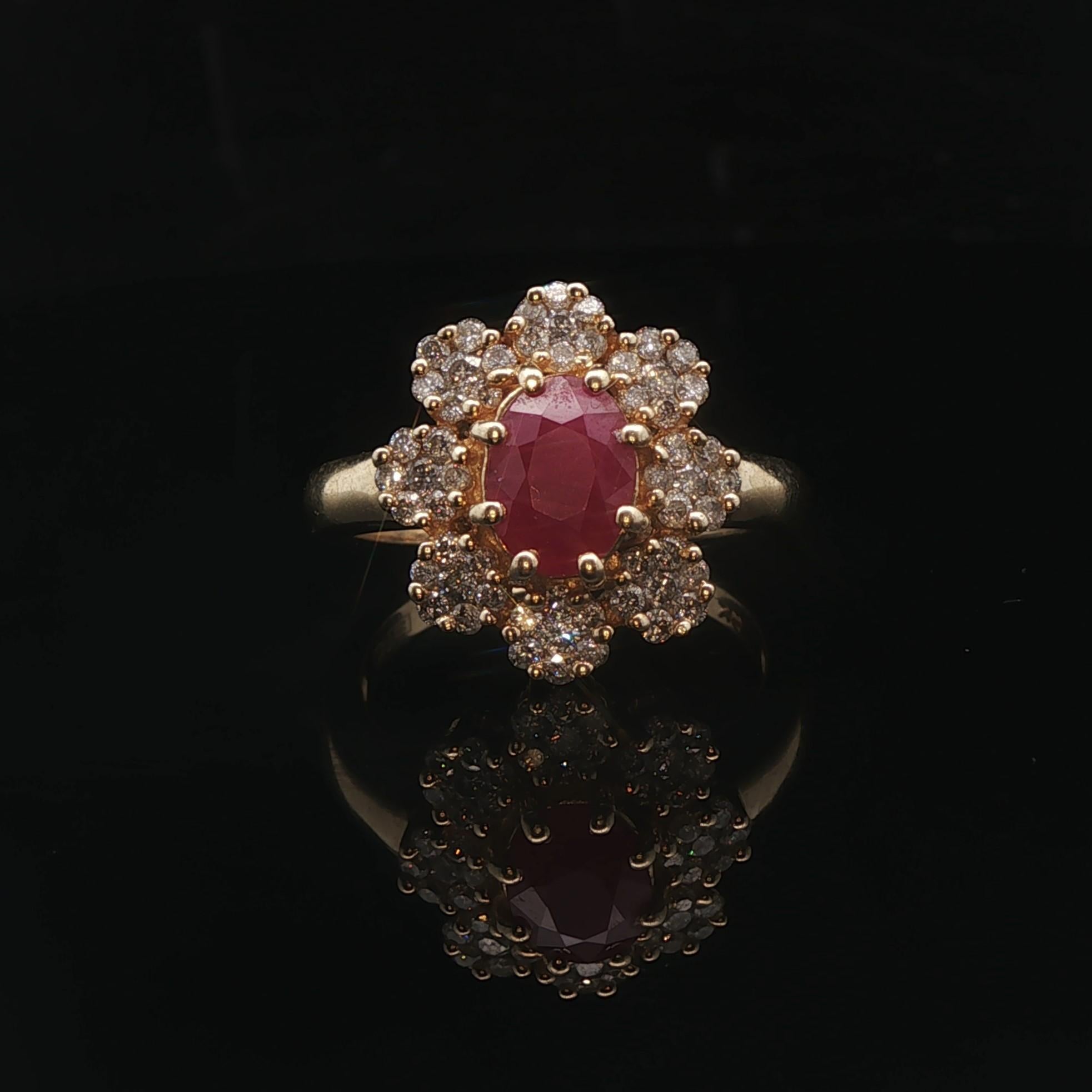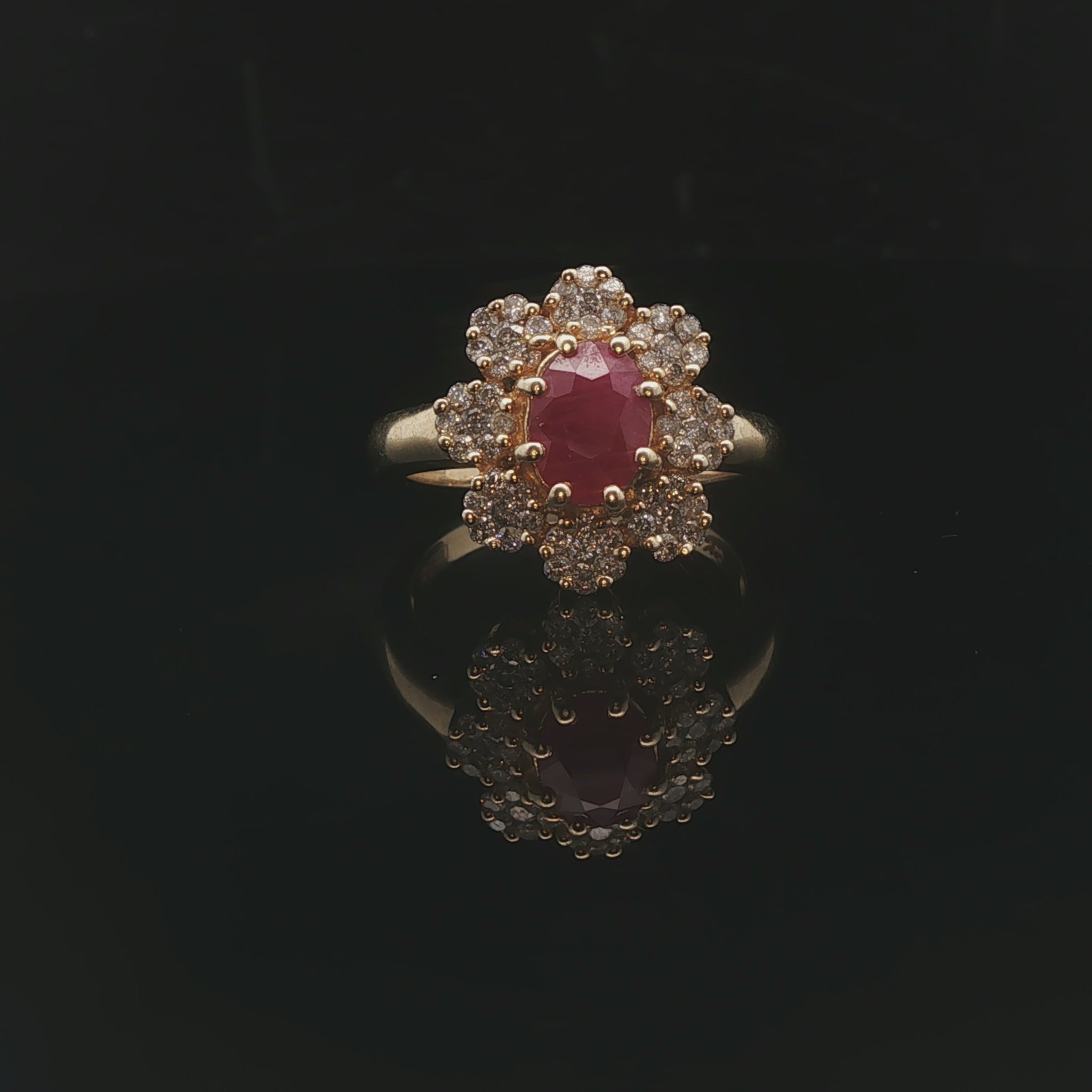 Effy 14k Yellow Gold Ruby and Diamond Halo Floral Ring Size 7.5