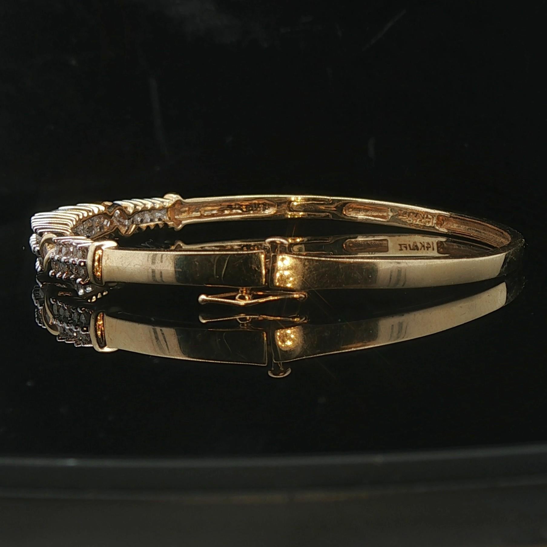 14k Yellow and White Gold 11g Vintage 0.50cttw Diamond Bangle Bracelet 6.5"