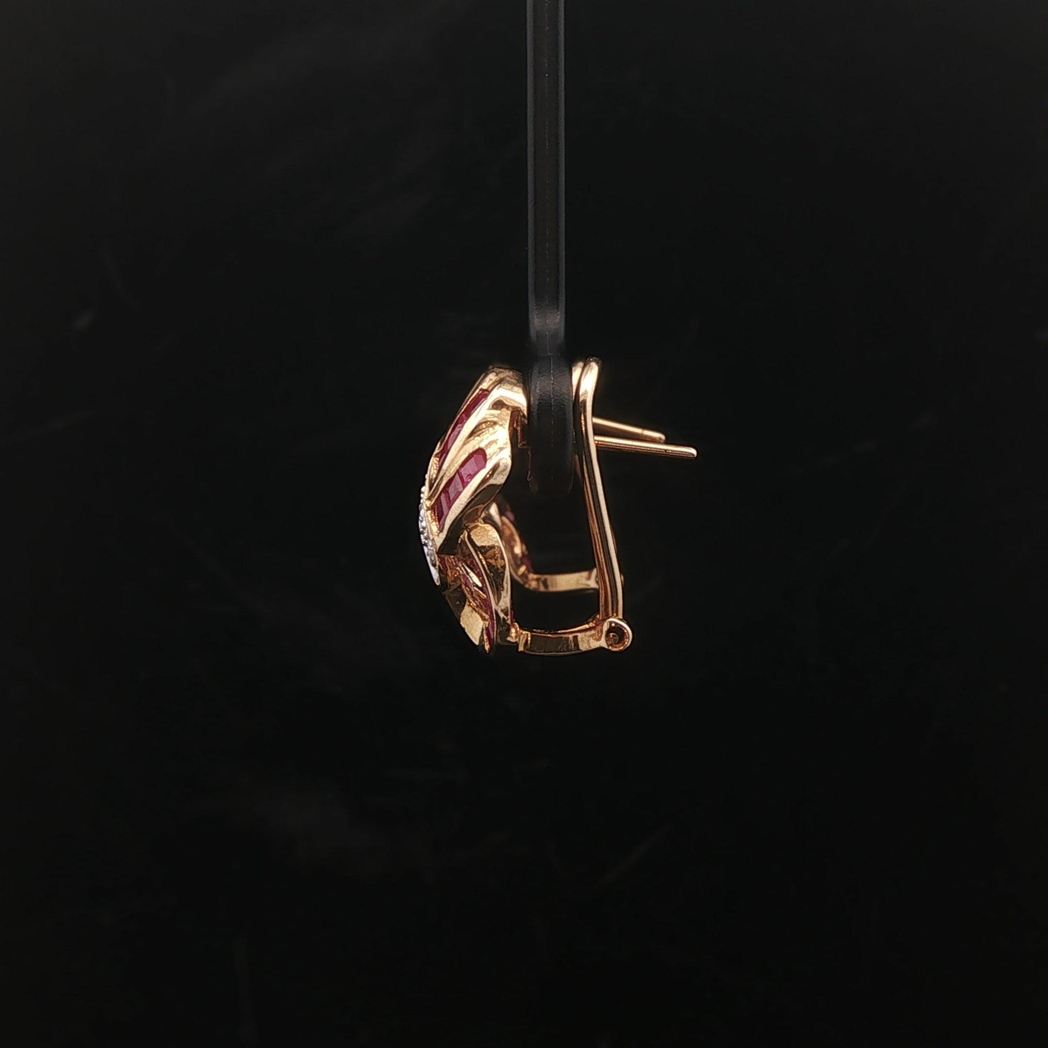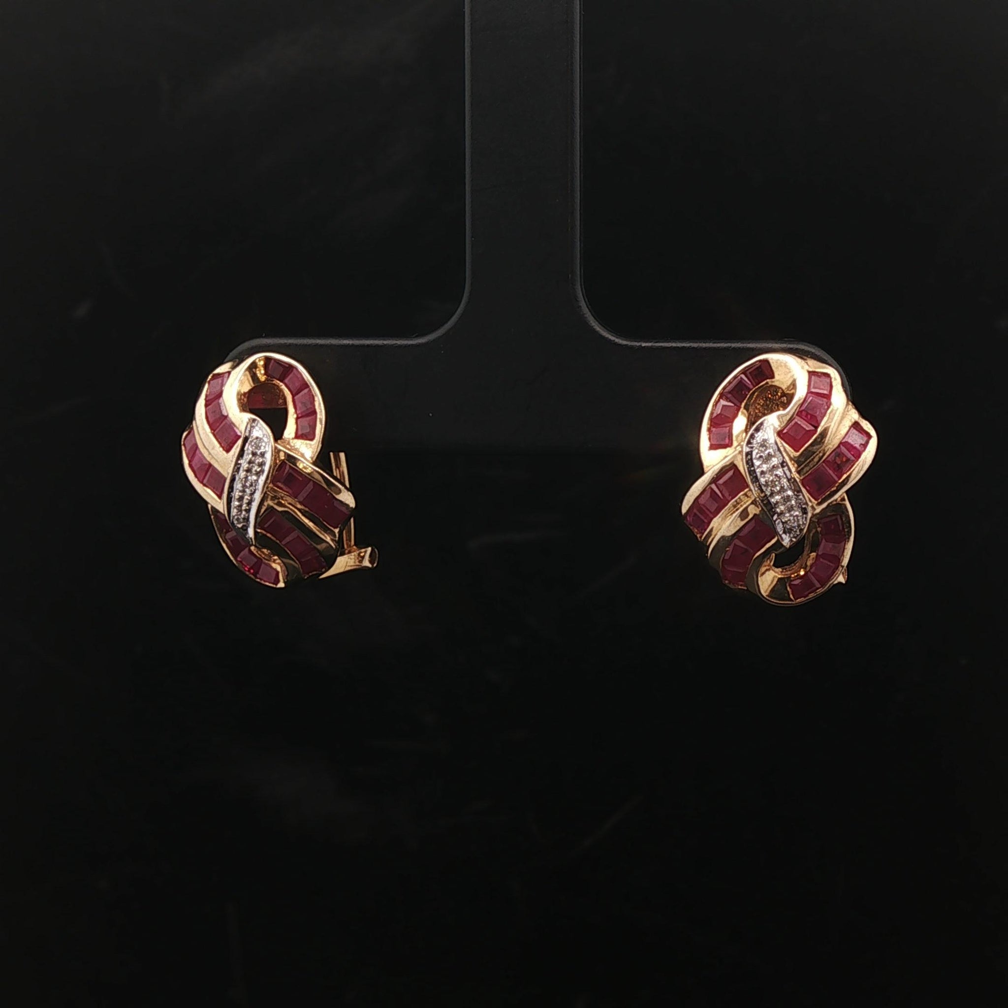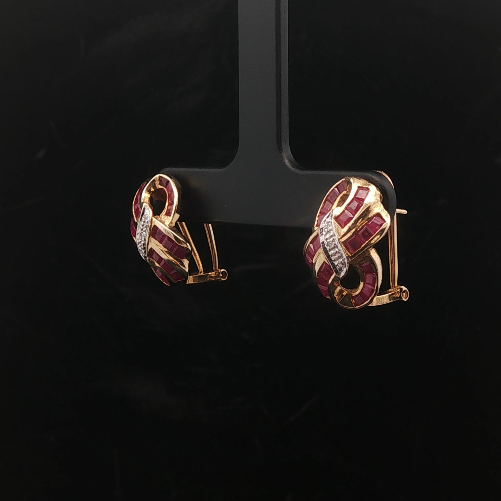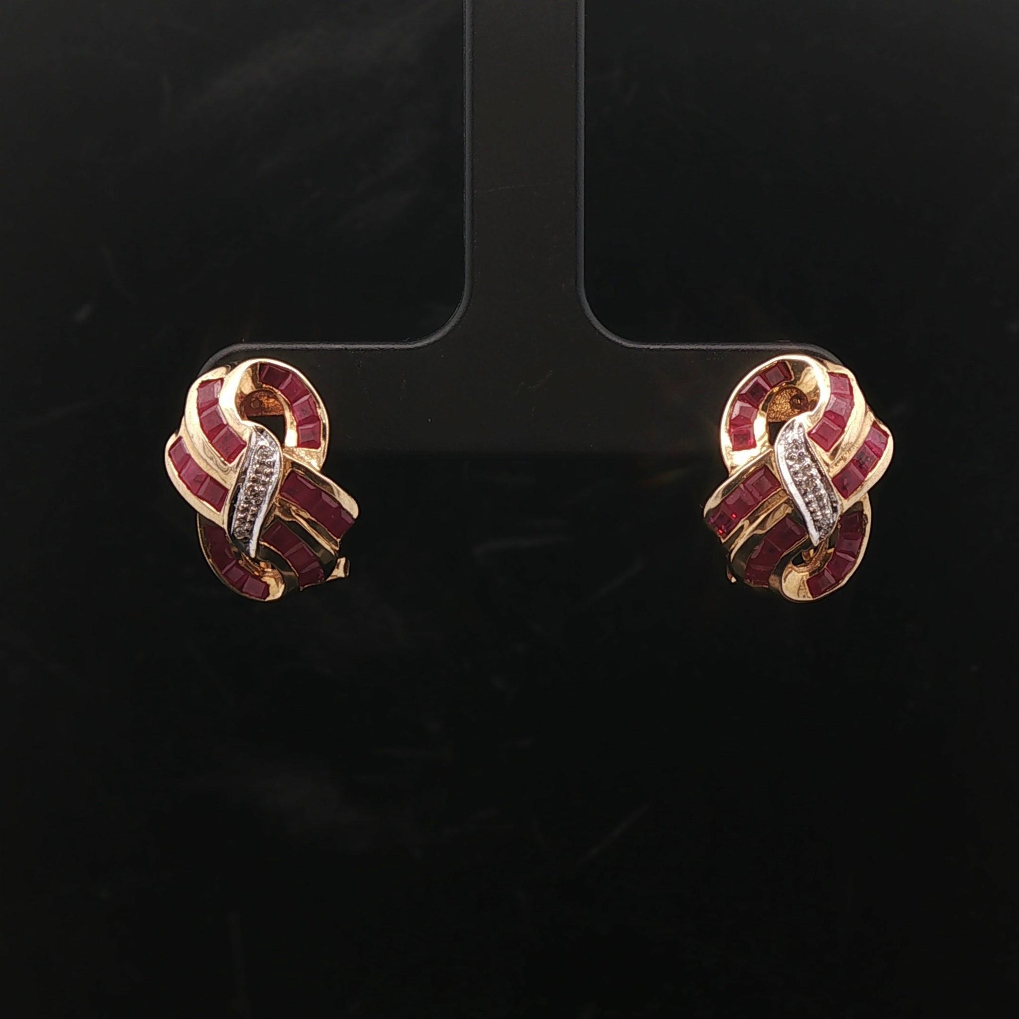 14k Yellow and White Gold Ruby and Diamond Ladies Ribbon Earrings