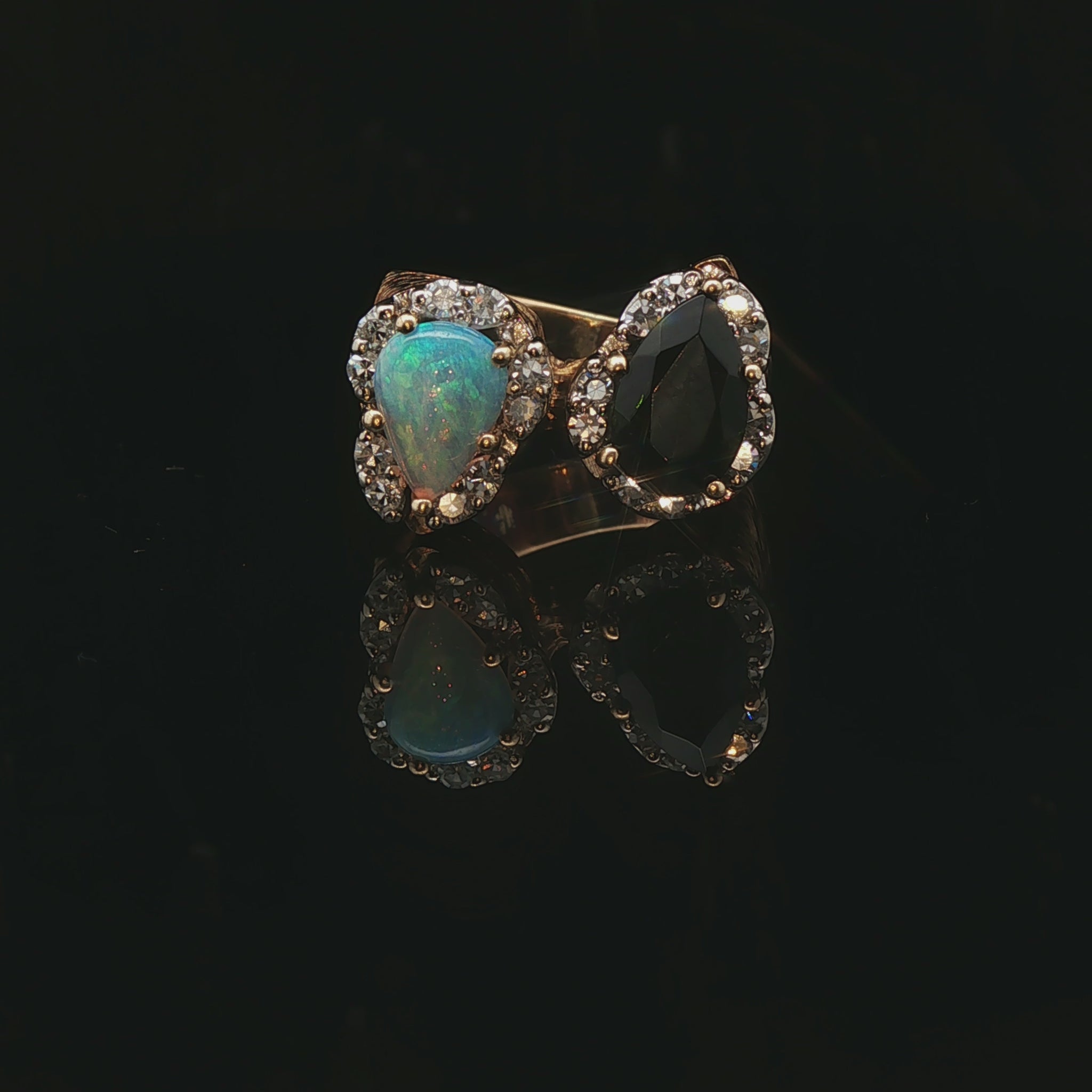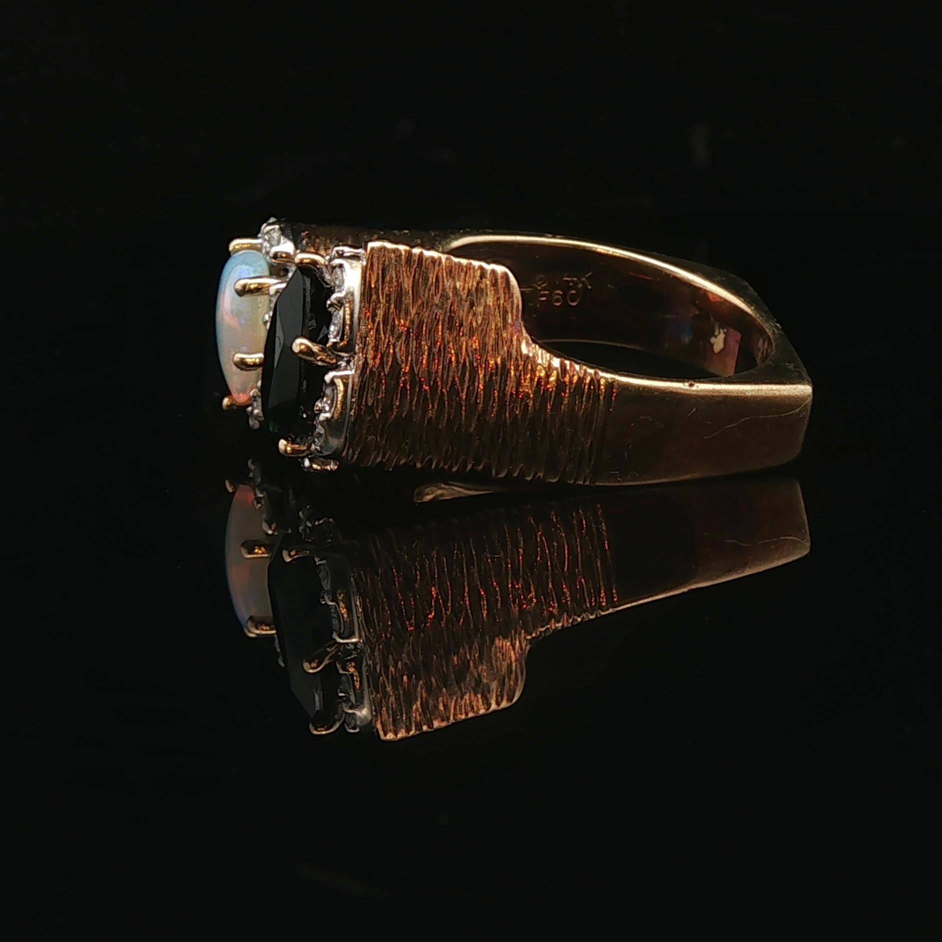 14k Yellow Gold Opal Green Tourmaline and Diamond Vintage Bypass Ring Size 6.5
