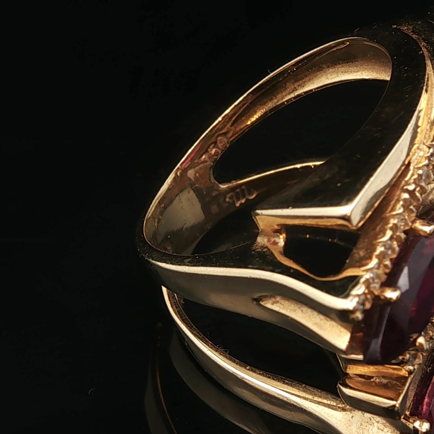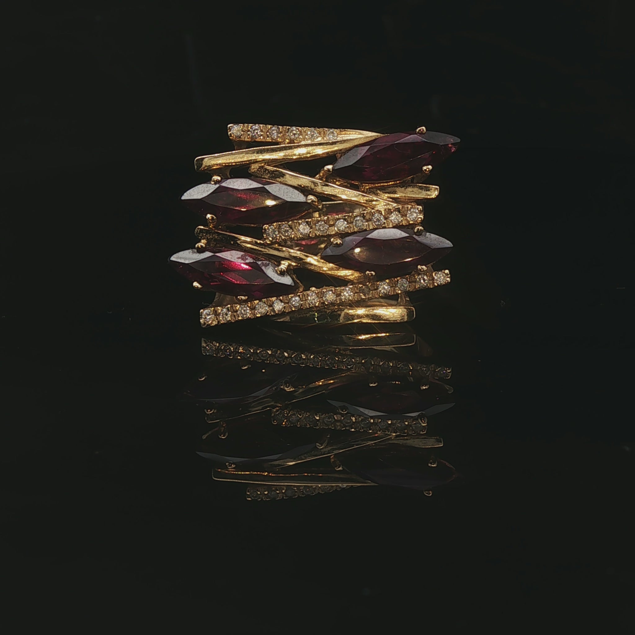 18k Yellow Gold Red Garnet and Diamond Heavy Abstract Ring Size 5.5