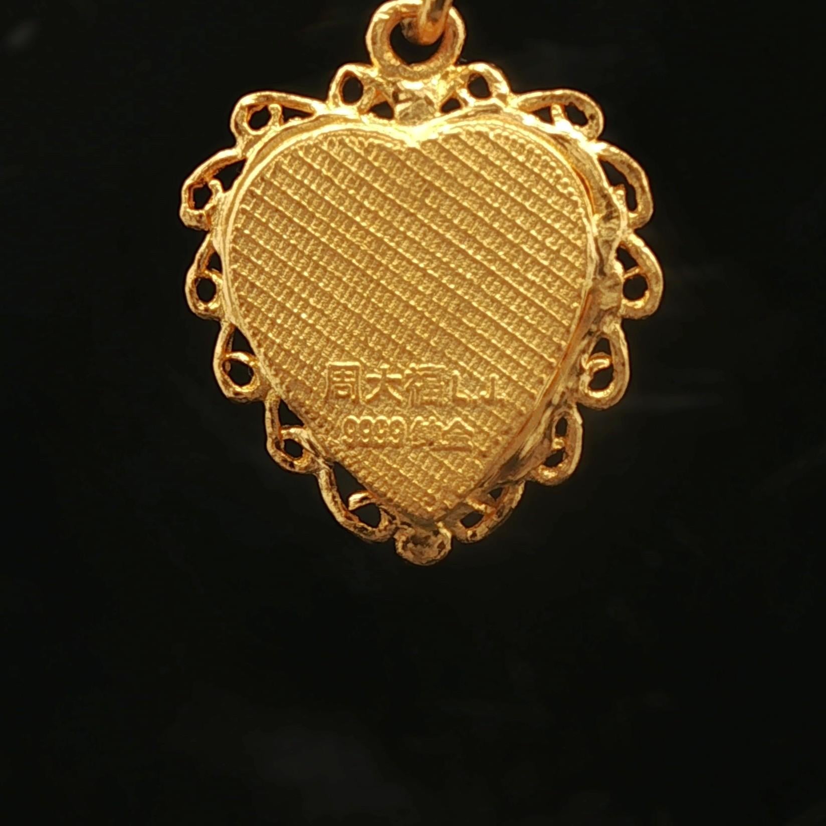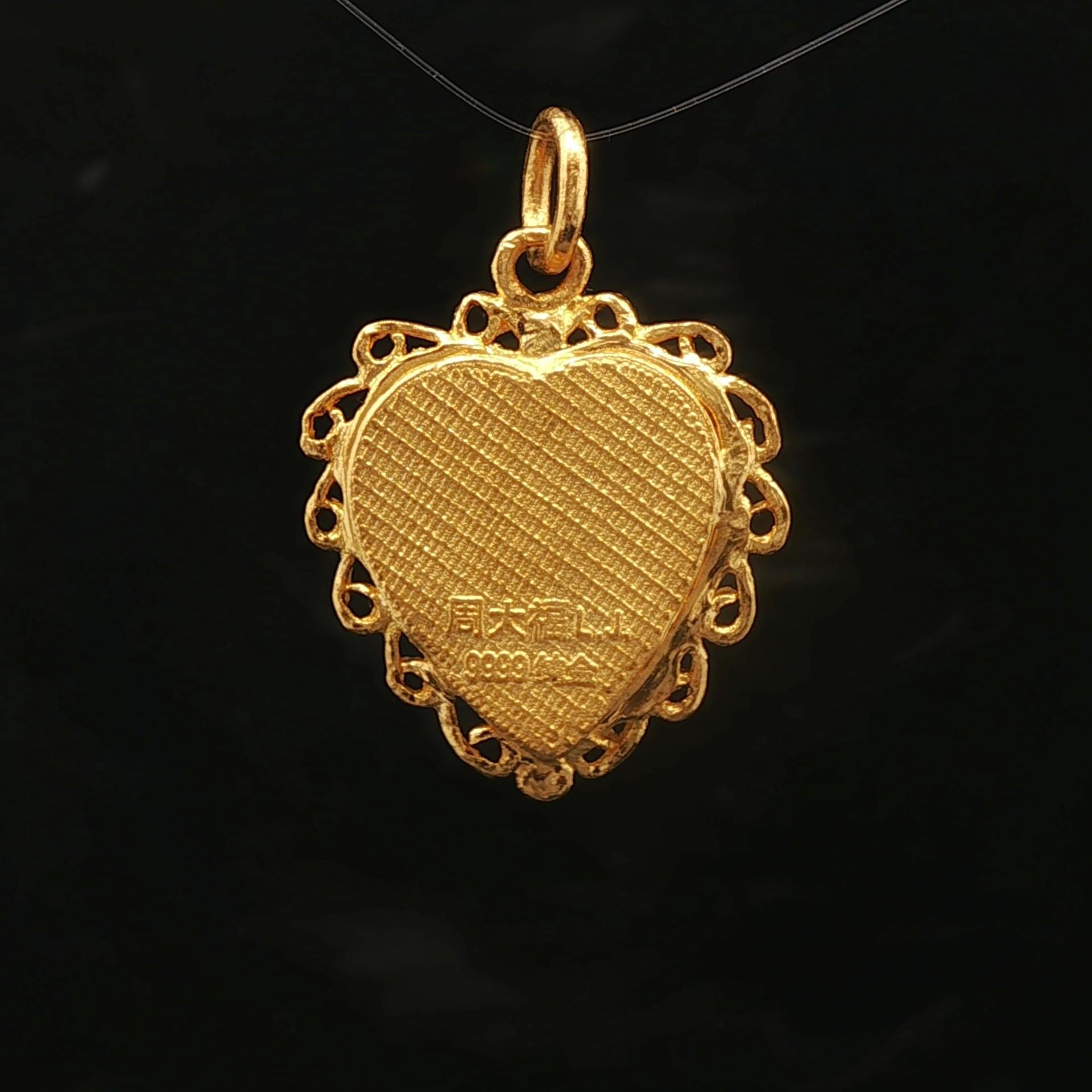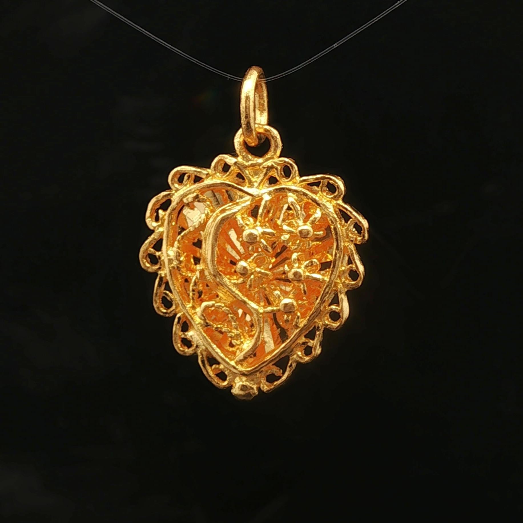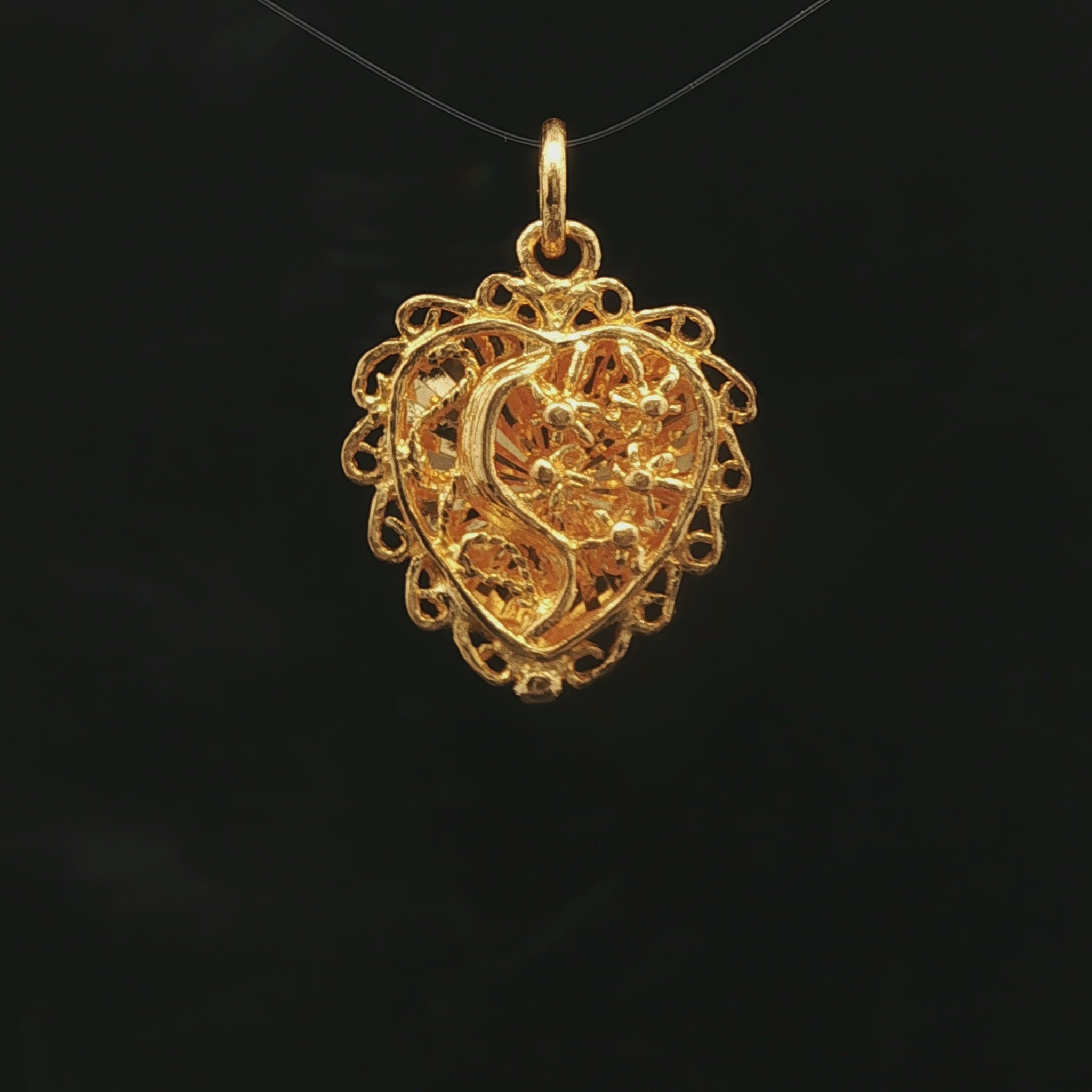 24k Pure Yellow Gold 4.1g Fancy Heart Charm Pendant 1"